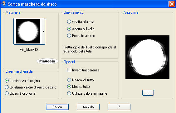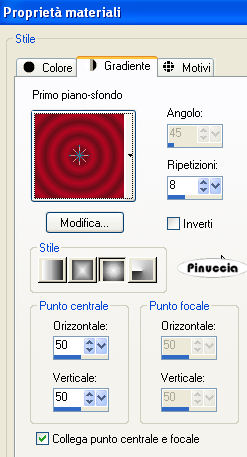 qui puoi trovare qualche risposta ai tuoi dubbi. Se l'argomento che ti interessa non è presente, ti prego di segnalarmelo. Questo tutorial è stato scritto in PSP X2, ma può essere eseguito anche con le altre versioni di PSP. Per tradurlo, l'ho eseguito con PSP X. Occorrente: Un tube a scelta. Il resto del materiale qui Il tube che ho usato è di Lori Rhae La maschera è di Vix Filtro: Tramage - Tow the line qui Metti la maschera nella cartella Maschere. Imposta il colore di primo piano con #b40822, e il colore di sfondo con #690f19. 1. Apri una nuova immagine bianca 600 x 600 pixels. ![]() 2. Effetti>Effetti geometrici>Prospettiva orizzontale. ![]() 3. Passa il colore di primo piano a Gradiente di primo piano/sfondo, con i seguenti settaggi: ![]() 4. Livelli>Nuovo livello raster. Riempi con il gradiente.5. Livelli>Carica/Salva maschera>Carica maschera da disco. Cerca e carica la maschera Vix_Mask12: ![]() Livelli>Elimina e rispondi sì alla domanda Unire la maschera nel livello corrente. ![]() Livelli>Unisci>Unisci gruppo. 6. Effetti>Plugins>Tramages - Tow the line: ![]() 7. Apri il tuo tube vai a Modifica>copia. Torna al tuo lavoro e vai a Modifica>incolla come nuovo livello. 8. Abbassa l'opacità di questo livello al 50%. 9. Attiva lo strumento Gomma ![]() e cancella la parte del tube al di fuori del cerchio. ![]() 10. Effetti>Effetti 3D>Sfalsa ombra, con i seguenti settaggi: ![]() 11. Modifica>Incolla come nuovo livello (il tube è ancora in memoria). Spostalo a destra, come nel mio esempio.12. Effetti>Effetti 3D>Sfalsa ombra, con i settaggi precedenti. 13. Riporta il colore di primo piano a colore e imposta il colore di sfondo con il nero. ![]() 14. Attiva lo strumento Testo , font Century Gothic:![]() se non hai questo font clicca qui Scrivi "Girl Power" ma NON cliccare ancora Applica. Seleziona la lettera P. ![]() e cambia la dimensione del font a 150. Ripeti il passaggio con la lettera G. Adesso puoi cliccare Applica. 15. Livelli>Converti in livello raster. 16. Sposta il testo in basso. 17. Livelli>Disponi>sposta giù. 18. Aggiungi il tuo nome e/o il tuo watermark. 19. Livelli>Unisci>Unisci tutto e salva in formato jpg. Se hai problemi o dubbi, o trovi un link non funzionante, o anche soltanto per un saluto, scrivimi 5 Gennaio 2009 |