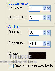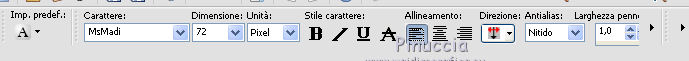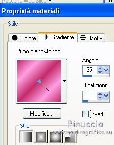 qui puoi trovare qualche risposta ai tuoi dubbi. Se l'argomento che ti interessa non è presente, ti prego di segnalarmelo. Questo tutorial è stato scritto in PSP X2, ma può essere eseguito anche con le altre versioni di PSP. Per tradurlo, l'ho eseguito con PSP X. Occorrente: Un tube a scelta. Il resto del materiale qui Per i miei esempi ho usato tubes di Patry, Crystal e Gini. Apri il font e minimizzalo. Lo troverai nella lista dei font disponibili quando ti servirà. Metti la maschera nella cartella Maschere. Imposta il colore di primo piano con #c32b6b, e il colore di sfondo con #ffa0e2. 1. Apri una nuova immagine bianca 650 x 650 pixels. 2. Passa il colore di primo piano a Gradiente. ![]() 3. Livelli>Nuovo livello raster. Riempi il livello con il gradiente.4. Livelli>Carica/Salva maschera>Carica maschera da disco. Cerca e carica la maschera Pbs-mask4. ![]() Livelli>Elimina e rispondi sì alla domanda Unire la maschera nel livello corrente. ![]() Livelli>Unisci>Unisci gruppo. 5. Apri CJC_SoShy_wordart12 e vai a Modifica>copia. Torna al tuo lavoro e vai a Modifica>Incolla come nuovo livello. Spostalo nell'angolo in alto a destra.6. Livelli>Duplica. Immagine>Rifletti. Immagine>Capovolgi. 7. Apri CJF_So_Shy_frame2 e vai a Modifica>copia. Torna al tuo lavoro e vai a Modifica>Incolla come nuovo livello. 8. Attiva lo strumento Selezione a mano libera , da punto a punto,e seleziona la cornice. ![]() 9. Apri CJC_SoShy_ppr18, e vai a Modifica>Copia. Torna al tuo lavoro e vai a Modifica>Incolla come nuovo livello. 10. Selezione>Inverti. Premi sulla tastiera il tasto CANC. 11. Selezione>Deseleziona. 12. Livelli>Disponi>Sposta giù. 13. Attiva il livello Raster 2. 14. Apri il tuo tube e vai a Modifica>copia. Torna al tuo lavoro e vai a Modifica>Incolla come nuovo livello. 15. Effetti>Effetti 3D>sfalsa ombra: ![]() 16. Apri CJC_SoShy_Azelea1 e vai a Modifica>Copia. Torna al tuo lavoro e vai a Modifica>Incolla come nuovo livello. Spostalo in basso.17. Chiudi il colore di primo piano e imposta il colore di sfondo con il bianco. 18. Attiva lo strumento Testo ![]() ![]() Scrivi Happy Feelings o quello che preferisci. 19. Livelli>Converti in livello raster. 20. Effetti>Effetti 3D>sfalsa ombra. ![]() 21. Aggiungi il tuo nome e/o il tuo watermark. Livelli>Unisci>Unisci tutto e salva in formato jpg. ![]() ![]()