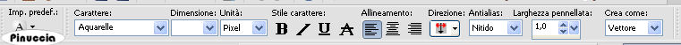 qui puoi trovare qualche risposta ai tuoi dubbi. Se l'argomento che ti interessa non è presente, ti prego di segnalarmelo. Questo tutorial è stato scritto in PSP X2, ma può essere eseguito anche con le altre versioni di PSP. Per tradurlo, l'ho eseguito con PSP X. Occorrente: Un tube a scelta, possibilmente con uno sfondo, delle dimensioni di circa 330 x 250 pixels. Il resto del materiale qui Per la mia immagine ho usato un tube di Susi Sgai. Apri il font e minimizzalo nella tua area di lavoro. Lo troverai nella lista dei font disponibili, quando ti servirà. Imposta il colore di primo piano con il bianco e il colore di sfondo con #4e1236. 1. Apri una nuova immagine bianca 600 x 600 pixels. ![]() 2. Apri back1_lolita e vai a Modifica>Copia. Torna al tuo lavoro e vai a Modifica>Incolla come nuovo livello. 3. Apri swirl, e vai a Modifica>Copia. Torna al tuo lavoro e vai a Modifica>Incolla come nuovo livello. 4. Apri back2-lolita, e vai a Modifica>Copia. Torna al tuo lavoro e vai a Modifica>Incolla come nuovo livello. 5. Apri knop_lolita, e vai a Modifica>Copia. Torna al tuo lavoro e vai a Modifica>Incolla come nuovo livello. 6. Apri paper_lolita, e vai a Modifica>Copia. Torna al tuo lavoro e vai a Modifica>Incolla come nuovo livello. Spostalo in alto a sinistra.7. Livelli>Duplica. Sposta il duplicato in basso a destra.![]() 8. Apri swirl2, e vai a Modifica>Copia. Torna al tuo lavoro e vai a Modifica>Incolla come nuovo livello. Spostalo in basso a destra.![]() 9. Apri la tua immagine, e vai a Modifica>Copia. Torna al tuo lavoro e vai a Modifica>Incolla come nuovo livello. 10. Apri Marble_Frame, e vai a Modifica>Copia. Torna al tuo lavoro e vai a Modifica>Incolla come nuovo livello. 11. Effetti>Effetti 3D>Sfalsa ombra: ![]() 12. Apri diamanttube, e vai a Modifica>Copia. Torna al tuo lavoro e vai a Modifica>Incolla come nuovo livello. Sposta i diamantini in alto a sinistra.![]() 13. Effetti>Effetti 3D>Sfalsa ombra, con i settaggi precedenti. 14. Livelli>Duplica. Sposta il duplicato in basso.15. Apri rose_lolita, e vai a Modifica>Copia. Torna al tuo lavoro e vai a Modifica>Incolla come nuovo livello. Spostalo in basso a destra.16. Apri fleur_lolita, e vai a Modifica>Copia. Torna al tuo lavoro e vai a Modifica>Incolla come nuovo livello. Spostalo in basso a sinistra.17. Controlla che tutto sia al posto giusto. Se necessario, puoi ancora spostare gli elementi della tua tag per sistemarli meglio. 18. Livelli>Unisci>Unisci tutto. 19. Attiva lo strumento Testo , font Aquarelle, con i seguenti settaggi:![]() Scrivi Lolita. 20. Livelli>Converti in livello raster. 21. Effetti>Effetti 3D>Sfalsa ombra, con i settaggi precedenti. 22. Aggiungi il tuo nome e/o il tuo watermark. 23. Livelli>Unisci>Unisci visibile e salva in formato jpg. Se hai problemi o dubbi, o trovi un link non funzionante, o anche soltanto per un saluto, scrivimi. 21 Gennaio 2009 |