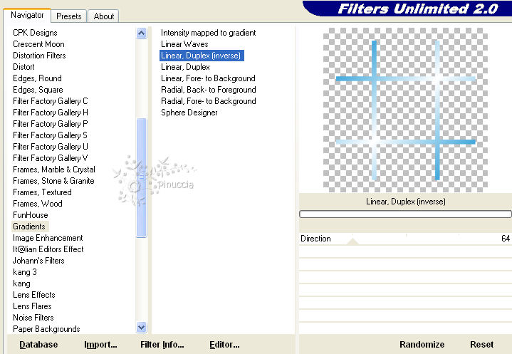 qui puoi trovare qualche risposta ai tuoi dubbi. Se l'argomento che ti interessa non è presente, ti prego di segnalarmelo. Questo tutorial è stato scritto in PSP X2, ma può essere eseguito anche con le altre versioni di PSP. Per tradurlo, l'ho eseguito con PSP X. Occorrente: Un tube a scelta. Il resto del materiale qui I tubes usati sono di kt_thafstrom, Patry e Angie. Le maschere sono di Vix Filtri: Filters Unlimited qui Metti le maschere nella cartella Maschere. e apri il resto del materiale in PSP. Imposta il colore di primo piano con #269bd6, e il colore di sfondo con #bdd854. 1. Apri una nuova immagine bianca 600 x 600 pixels. ![]() 2. Livelli>Nuovo livello raster. 3. Livelli>Carica/Salva maschera>Carica maschera da disco. Cerca e carica la maschera Vix 12: ![]() Livelli>elimina, e rispondi sì alla domanda Unire la maschera nel livello corrente. ![]() Livelli>Unisci>Unisci gruppo. 4. Imposta il colore di sfondo con il bianco. 5. Livelli>Nuovo livello raster. Riempi con il colore di primo piano.6. Livelli>Carica/Salva maschera>Carica maschera da disco. Cerca e carica la maschera Vix 130: ![]() Livelli>elimina, e rispondi sì alla domanda Unire la maschera nel livello corrente. ![]() Livelli>Unisci>Unisci gruppo. 7. Effetti>Plugins>Filters Unlimited 2.0 - Gradients. ![]() il risultato di questo filtro è influenzato dal colore impostato come colore di sfondo. Per questo motivo al punto 4, abbiamo impostato il colore bianco. 8. Effetti>Effetti 3D>Sfalsa ombra. ![]() 9. Apri mfisher-flowers1a-sh e vai a Modifica>Copia. Torna al tuo lavoro e vai a Modifica>Incolla come nuovo livello. 10. Apri bow_summermagic-Vika e vai a Modifica>Copia. Torna al tuo lavoro e vai a Modifica>Incolla come nuovo livello. Spostalo in basso.11. Apri mini_flowers_summermagic-Vika e vai a Modifica>Copia. Torna al tuo lavoro e vai a Modifica>Incolla come nuovo livello. Sposta anche questo tube in basso.12. Apri il tuo tube e vai a Modifica>Copia. Torna al tuo lavoro e vai a Modifica>Incolla come nuovo livello. 13. Effetti>Effetti 3D>Sfalsa ombra: ![]() 14. Apri wordart_summermagic-Vika e vai a Modifica>Copia. Torna al tuo lavoro e vai a Modifica>Incolla come nuovo livello. Sposta il testo in basso.15. Aggiungi il tuo nome e/o il tuo watermark. 16. Livelli>Unisci>Unisci tutto e salva in formato jpg. ![]() ![]()