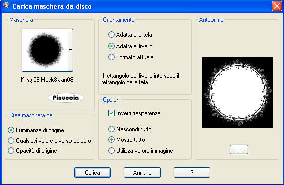 qui puoi trovare qualche risposta ai tuoi dubbi. Se l'argomento che ti interessa non è presente, ti prego di segnalarmelo. Questo tutorial è stato scritto in PSP X2, ma può essere eseguito anche con le altre versioni di PSP. Per tradurlo, l'ho eseguito con PSP X. Occorrente: Un tube a scelta. Il resto del materiale qui Il tube che ho usato è di Lori Rhae. La maschera è di Kirsty . Metti la maschera nella cartella Maschere. Metti la Selezione nella cartella Selezioni. Metti i pennelli nella cartella Pennelli. Se hai problemi con i pennelli vedi alcuni appunti qui Apri il font e minimizzalo nella tua area di lavoro. Lo troverai nella lista dei font disponibili, quando ti servirà. Imposta il colore di primo piano con #640000, e il colore di sfondo con #e2d1d1. 1. Apri una nuova immagine bianca 600 x 600 pixels. ![]() 2. Livelli>Nuovo livello raster. 3. Attiva lo strumento Pennello ![]() cerca e seleziona il pennello Kitty454, e applicalo nell'angolo in alto a sinistra e nell'angolo in basso a destra, cliccando con il tasto sinistro del mouse per usare il colore scuro di primo piano. Seleziona il pennello Kitty833 e applicalo in basso cliccando con il tasto destro del mouse per usare il colore chiaro di sfondo. ![]() 4.Livelli>Nuovo livello raster. 5. Selezione>Carica/Salva selezione>Carica selezione da disco. Cerca e carica la selezione Tendre_Moments_Vika: ![]() 6. Apri DEBA PAPER7 e vai a Modifica>copia. Torna al tuo lavoro e vai a Modifica>Incolla nella selezione. Selezione>Deseleziona. 7. Livelli>Carica/Salva maschera>Carica maschera da disco. Cerca e carica la maschera Kirsty08-Mask8-Jan08: ![]() Livelli>Elimina e rispondi sì alla domanda unire la maschera nel livello corrente: ![]() Livelli>Unisci>Unisci gruppo. 8. Apri il tuo tube e vai a Modifica>Copia. Torna al tuo lavoro e vai a Modifica>Incolla come nuovo livello. Sposta il tube un po' più a destra.9. Chiudi il colore di primo piano. 10. Attiva lo strumento Testo , font Jacoba Bold,![]() Scrivi "Tendre Moments". 11. Livelli>Converti in livello raster. 12. Effetti>Effetti 3D>Sfalsa ombra: ![]() Aggiungi il tuo nome e/o il tuo watermark. 13. Livelli>Unisci>Unisci tutto e salva in formato jpg. ![]() Se hai problemi o dubbi, o trovi un link non funzionante, o anche soltanto per un saluto, scrivimi 8 Febbraio 2009 |