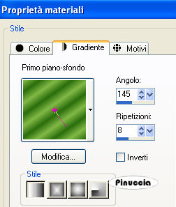 Passa il colore di primo piano a Gradiente di primo piano/sfondo, con i seguenti settaggi.