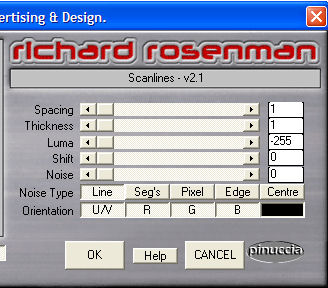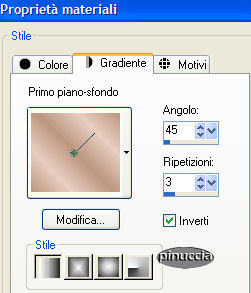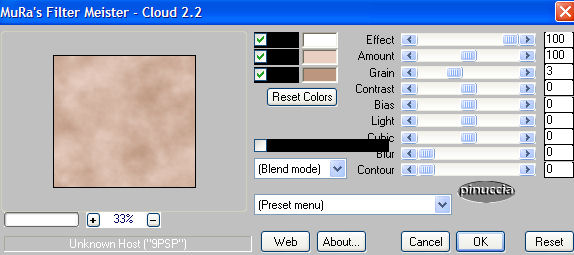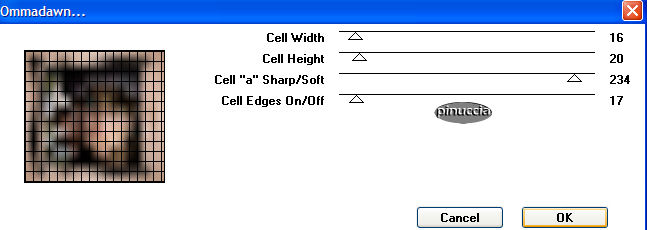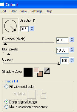 qui puoi trovare qualche risposta ai tuoi dubbi. Se l'argomento che ti interessa non è presente, ti prego di segnalarmelo. Occorrente: Una bella immagine. I tubes che ho usato sono di Gini e di Alejandra Rosales. Filtri: Mura's Meister - Cloud qui Graphics Plus qui Richard Rosenman / Scanlines qui Toadies qui Eye Candy 4000 qui 1. Apri la tua immagine e duplicala (shift+D). Chiudi l'originale. Immagine>Ridimensiona, a 400 pixels nel suo lato più largo. Regola>Messa a fuoco>Metti a fuoco. Duplica l'immagine (shift+D) e minimizza la copia. Ti servirà più tardi. Scegli dalla tua immagine un colore chiaro come colore di primo piano e un colore scuro come colore di sfondo. Selezione>Seleziona tutto. Effetti>Plugins>Eye Candy 4000 - Cut Out: ![]() Ripeti l'Effetto Cut Out ancora una volta, cambiando il valore "Direction" a 135. Selezione>Nessuna selezione. 2. Immagine>Aggiungi bordatura, 2 pixels, simmetriche, con il colore chiaro di primo piano. Immagine>Aggiungi bordatura, 10 pixels, simmetriche, con il colore scuro di sfondo. Seleziona il bordo con la bacchetta magica ![]() Effetti>Plugins>Mura's Meister - Cloud, con i settaggi standard. ![]() Effetti>Plugins>Graphics Plus - Cross Shadow, con i settaggi standard. ![]() Selezione>Nessuna selezione. Immagine>Aggiungi bordatura, 2 pixels, simmetriche, con il colore chiaro di primo piano. 3. Immagine>Aggiungi bordatura, 15 pixels, simmetriche, con il colore scuro di sfondo. Seleziona il bordo con la bacchetta magica ![]() Effetti>Plugins>Richard Rosenman - Scanlines, con i settaggi standard. ![]() Effetti>Plugins>Eye Candy 4000 - Cut Out ![]() Selezione>Nessuna selezione. 4. Immagine>Aggiungi bordatura, 2 pixels, simmetriche, con il colore chiaro di primo piano. Immagine>Aggiungi bordatura, 10 pixels, simmetriche, con il colore scuro di sfondo. Seleziona il bordo con la bacchetta magica ![]() Effetti>Plugins>Mura's Meister - Cloud, con i settaggi standard. Effetti>Plugins>Graphics Plus - Cross Shadow, settaggi standard. Selezione>Nessuna selezione. Immagine>Aggiungi bordatura, 2 pixels, simmetriche, con il colore chiaro di primo piano. 5. Immagine>Aggiungi bordatura, 15 pixels, simmetriche, con il colore scuro di sfondo. Seleziona il bordo con la bacchetta magica ![]() Effetti>Plugins>Richard Rosenman / Scanlines, settaggi standard. Effetti>Plugins>Eye Candy 4000 - Cut Out, settaggi standard. Selezione>Nessuna selezione. 6. Immagine>Aggiungi bordatura, 1 pixel, simmetriche, con il colore nero. Auswahl aufheben. Immagine>Aggiungi bordatura, 20 pixels, simmetriche, con il colore chiaro di primo piano. Seleziona il bordo con la bacchetta magica ![]() Passa il colore di primo piano a Gradiente di primo piano/sfondo con questi settaggi: ![]() Riempi la selezione con questo gradiente.Effetti>Plugins>Toadies - Ommadawn: ![]() Selezione>Nessuna selezione. Immagine>Aggiungi bordatura, 1 pixel, simmetriche, con il colore nero. 7. Attiva la copia che hai messo da parte prima e vai a Modifica>Copia. Torna al tuo lavoro e vai a Modifica>Incolla>Incolla come nuovo livello. Regola>Tonalità e saturazione>Viraggio ![]() Regola>Aggiungi/Rimuovi disturbo>Aggiungi disturbo: ![]() Regola>Sfocatura>Sfocatura gaussiana, raggio 3. Cambia la modalità di miscelatura in Luce Diffusa. Livelli>Unisci>Unisci tutto. 8. Non dimenticare la tua firma o il tuo watermark. Salva in formato jpg. ![]() ![]() Se hai problemi o dubbi, o trovi un link non funzionante, o anche soltanto per un saluto, scrivimi. Dicembre 2006 |