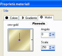 Passa il colore di sfondo a Motivi, e seleziona un motivo oro con i seguenti settaggi.