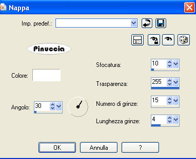 Effetti>Effetti di trama>Nappa, con i seguenti settaggi: