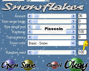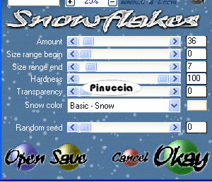 Ripeti l'Effetto Snowflakes con gli stessi settaggi, ma cambiando il valore di Random Seed con 100.