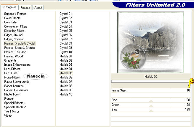 Effetti>Plugins>Filters Unlimited 2.0 - Frame Marble&Crystal - Marble05, con i seguenti settaggi: