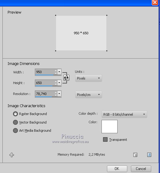1. Open a new white image 950 x 650 pixels.