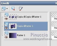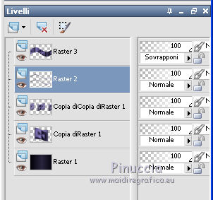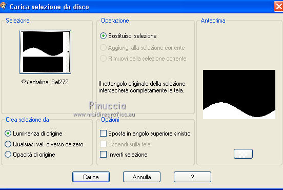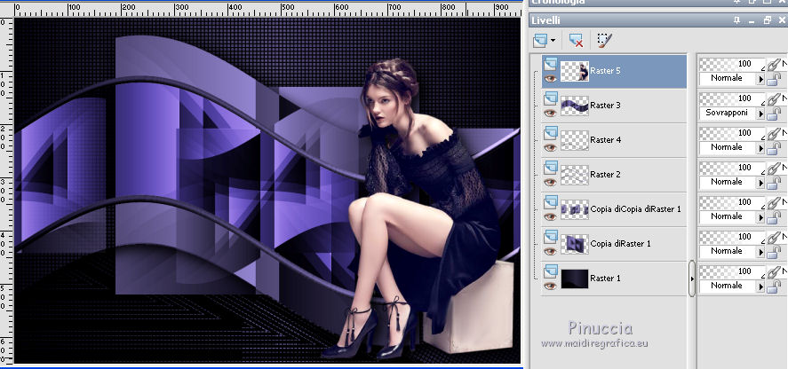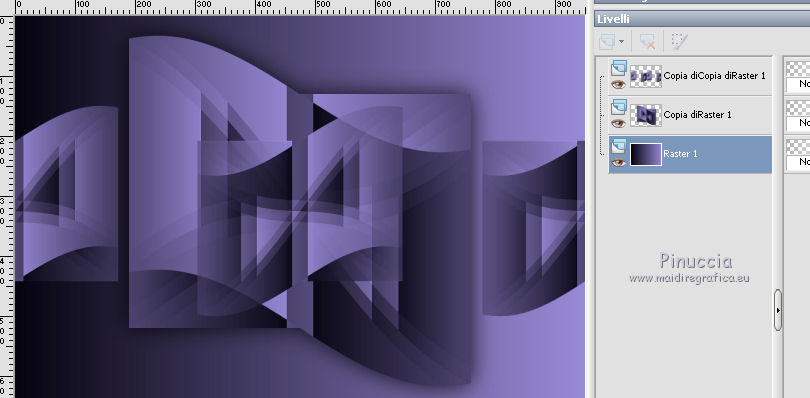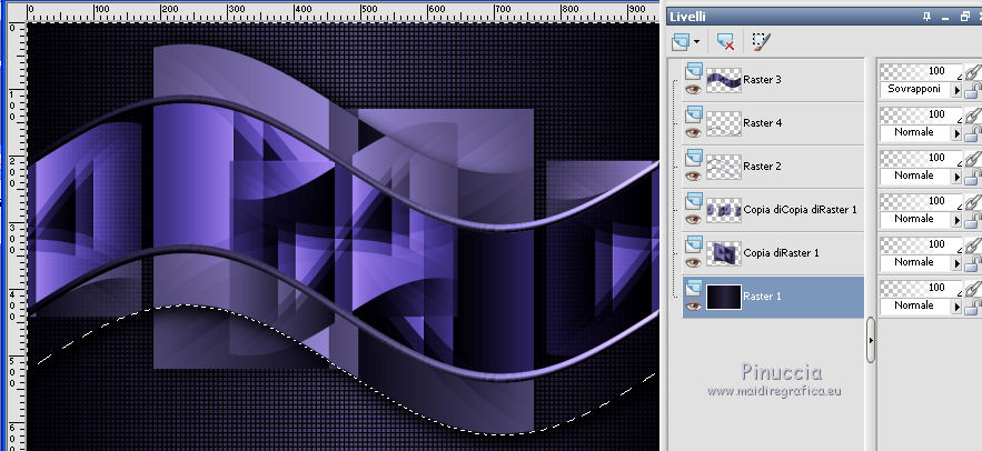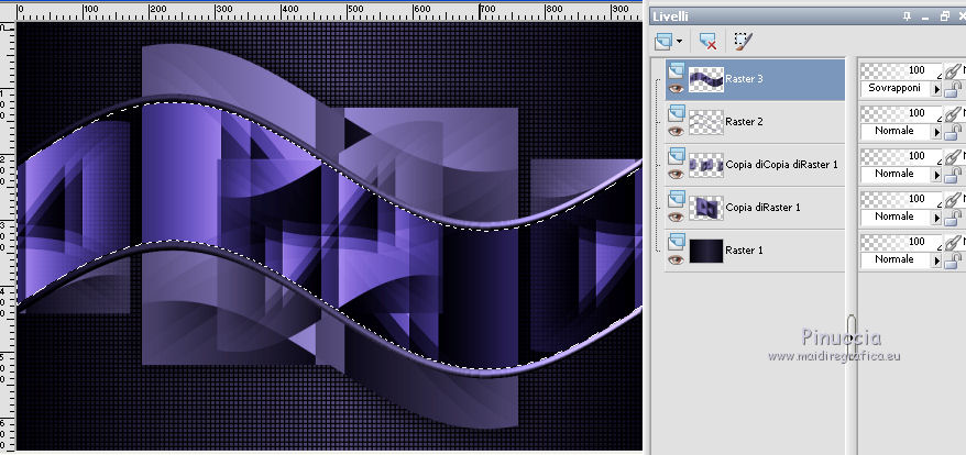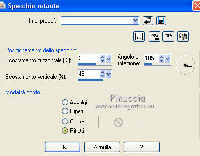 qui puoi trovare qualche risposta ai tuoi dubbi. Se l'argomento che ti interessa non è presente, ti prego di segnalarmelo. Questo tutorial è stato realizzato con Corel19 e tradotto con Corel X, CorelX17 e CorelX19, ma può essere realizzato anche con le altre versioni di PSP. Dalla versione X4, il comando Immagine>Rifletti è stato sostituito con Immagine>Capovolgi in orizzontale, e il comando Immagine>Capovolgi con Immagine>Capovolgi in verticale. Nelle versioni X5 e X6, le funzioni sono state migliorate rendendo disponibile il menu Oggetti. Con la nuova versione X7, sono tornati Rifletti>Capovolgi, ma con nuove varianti. Vedi la scheda sull'argomento qui traduzione in inglese/english translation qui/here Le vostre versioni/your versions qui/here Occorrente: Un tube a scelta. Il resto del materiale qui Per il tube della donna (non fornito) grazie Nara Pamplona (Tube Nara Pamplona 1523). Il resto del materiale è di Yedralina. Filtri: se hai problemi con i filtri, consulta la mia sezione filtri qui Filters Unlimited 2.0 qui &<Bkg Designer sf10I> - Corner Half Wrap, Alf's Border Mirror Bevel, Cruncher (da importare in Unlimited) qui RCS Filter Pak 1.0 - RCS Screenworks-Grid qui VM Experimental - Tee Wee qui Alien Skin Eye Candy 5 Impact - Glass qui I filtri RCS Filter Pak e VM Experimental si possono usare da soli o importati in Filters Unlimited (come fare vedi qui) Se un filtro fornito appare con questa icona ![]() non esitare a cambiare modalità di miscelatura e opacità secondo i colori utilizzati. Nelle ultime versioni di PSP non c'è il gradiente di primo piano/sfondo (Corel_06_029) Puoi usare i gradienti delle versioni precedenti. Trovi qui i gradienti Corel X. Metti le selezioni nella cartella Selezioni. 1. Scegli due colori dal tuo tube principale. Imposta il colore di primo piano con il colore scuro; il mio #070510, e il colore di sfondo con il colore chiaro; il mio #998ad8 ![]() 2. Passa il colore di primo piano a Gradiente di primo piano/sfondo, stile Lineare. ![]() 3. Apri una nuova immagine trasparente 950 x 650 pixels, e riempila con il gradiente.4. Livelli>Duplica. Immagine>Rifletti. 5. Effetti>Plugins>Filters Unlimited 2.0 - &<Bkg Designer sf10I> - Corner Half Wrap. ![]() 6. Effetti>Plugins>Filters Unlimited 2.0 - &<Bkg Designer sf10I> - Alf's Border Mirror Bevel. ![]() 7. Effetti>Plugins>Filters Unlimited 2.0 - &<Bkg Designer sf10I> - Cruncher. ![]() 8. Immagine>Ridimensiona, al 60%, tutti i livelli non selezionato. 9. Immagine>Rifletti. 10. Livelli>Duplica. 11. Effetti>Effetti di distorsione>Onda. ![]() Avrai questo: ![]() 12. Immagine>Rifletti. Avrai questo: ![]() 13. Livelli>Unisci>Unisci giù. 14. Livelli>Duplica. Immagine>Ridimensiona, al 60%, tutti i livelli non selezionato. 15. Effetti>Effetti di immagine>Motivo unico. ![]() Avrai questo: ![]() 16. Attiva il livello sottostante, copia di Raster 1. ![]() 17. Immagine>Rifletti. 18. Effetti>Effetti 3D>Sfalsa ombra, colore nero. ![]() 19. Attiva il livello di sfondo. ![]() 20. Effetti>Plugins>Filters Unlimited 2.0 - RCS Filter Pak 1.0 - RCS Screenworks-Grid ![]() 21. Effetti>Effetti di riflesso>Specchio rotante. ![]() 22. Livelli>Nuovo livello raster. Livelli>Disponi>Porta in alto. 23. Selezione>Carica/Salva selezione>Carica selezione da disco. Cerca e carica la selezione ©Yedralina_Sel274. ![]() Riempi la selezione con il gradiente.24. Effetti>Effetti 3D>Smusso a incasso. ![]() Selezione>Deseleziona. 25. Attiva lo strumento Bacchetta magica , sfumatura e tolleranza 0e clicca nello spazio tra le onde per selezionarlo. ![]() 26. Livelli>Nuovo livello raster. Modifica>Copia Unione. Modifica>Incolla nella selezione. 27. Cambia la modalità di miscelatura di questo livello in Sovrapponi. ![]() Selezione>Deseleziona. 28. Attiva il livello sottostante, Raster 2. ![]() 29. Selezione>Carica/Salva selezione>Carica selezione da disco. Cerca e carica la selezione ©Yedralina_Sel273. ![]() 30. Selezione>Inverti. Effetti>Plugins>Alien Skin Eye Candy 5 Impact - Perspective Shadow. Seleziona il preset Drop Shadow Blurry e ok. ![]() Selezione>Deseleziona. 31. Livelli>Nuovo livello raster. Selezione>Carica/Salva selezione>Carica selezione da disco. Cerca e carica la selezione ©Yedralina_Sel272. ![]() 32. Selezione>Inverti. Effetti>Plugins>Alien Skin Eye Candy 5 Impact - Perspective Shadow. Seleziona il preset Drop Shadow Blurry e ok. ![]() Mantieni selezionato. 33. Attiva il livello di sfondo Raster 1. ![]() 34. Selezione>Inverti. Effetti>Plugins>VM Experimental - Tee Wee. ![]() 35. Effetti>Effetti di riflesso>Specchio rotante. ![]() 36. Regola>Messa a fuoco>Metti a fuoco. Selezione>Deseleziona. Avrai questo ![]() 37. Apri il tuo tube e vai a Modifica>Copia. Torna al tuo lavoro e vai a Modifica>Incolla come nuovo livello. Immagine>Ridimensiona, se e quanto necessario, tutti i livelli non selezionato. Sposta il tube a destra.Effetti>Effetti 3D>Sfalsa ombra, a scelta. Dovresti avere questo. ![]() 38. Immagine>Aggiungi bordatura, 1 pixel, simmetriche, colore chiaro. Immagine>Aggiungi bordatura, 3 pixels, simmetriche, colore scuro. Immagine>Aggiungi bordatura, 1 pixel, simmetriche, colore chiaro. 39. Selezione>Seleziona tutto. 40. Modifica>Copia. 41. Immagine>Aggiungi bordatura, 40 pixels, simmetriche, con un colore qualsiasi. Selezione>Inverti. Modifica>Incolla nella selezione. 42. Effetti>Plugins>Filters Unlimited 2.0 - RCS Filter Pak 1.0 - RCS Screenworks-Grid. ![]() Selezione>Deseleziona. 43. Immagine>Aggiungi bordatura, 3 pixels, simmetriche, colore scuro. 44. Firma il tuo lavoro su un nuovo livello. Livelli>Unisci>Unisci tutto e salva in formato jpg. Il tube di questo esempio è di Guismo ![]() ![]() Puoi scrivermi se hai problemi o dubbi, o trovi un link che non funziona, o soltanto per un saluto. 6 Marzo 2017 |