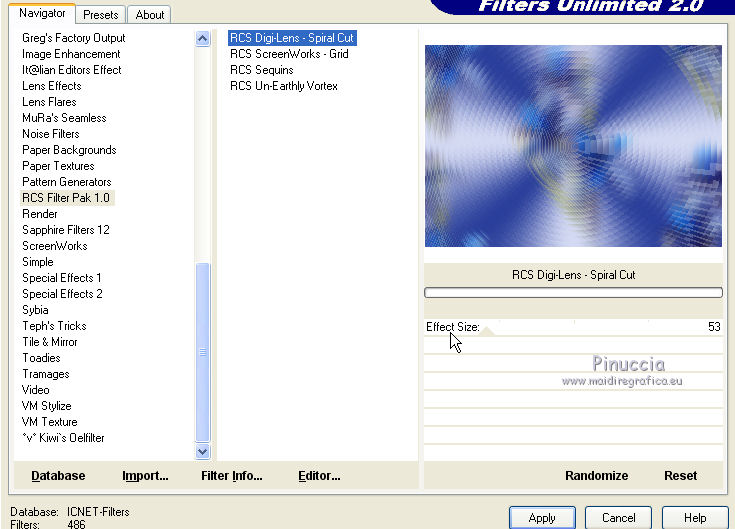 10. Effects>Plugins>Filters Unlimited 2.0 - RCS Filter Pak 1.0 - RCS Digi-Lens - Spiral Cut.