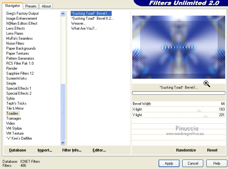 Effects>Plugins>Filters Unlimited 2.0 - Toadies - Sucking Toad Bevel I.