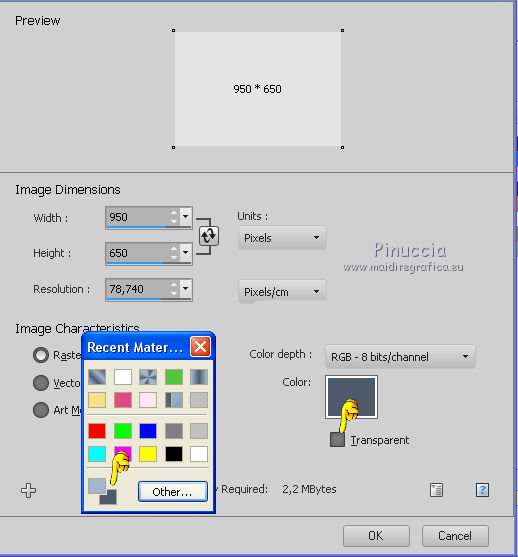 Will have the table of the recent colors: at the bottom left you find your Materials palette.