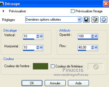 Effets>Effets 3D>Ombre portée, avec les paramètres utilisés pour le tube.