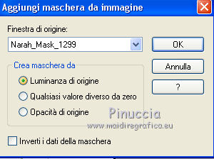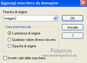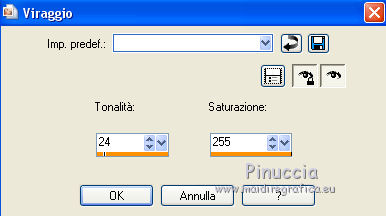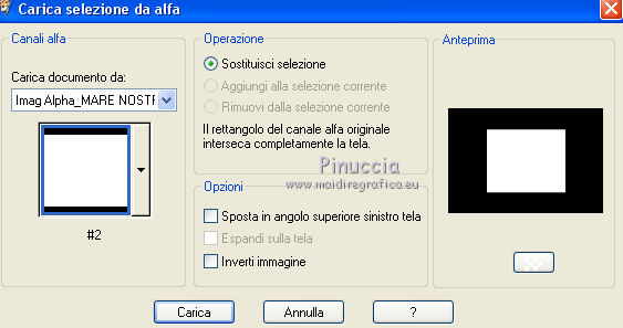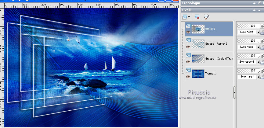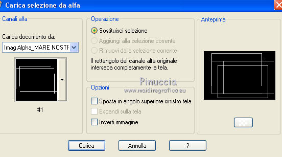 qui puoi trovare qualche risposta ai tuoi dubbi. Se l'argomento che ti interessa non è presente, ti prego di segnalarmelo. Questo tutorial è stato realizzato con Corel19 e tradotto con CorelX e CorelX2 e CorelX3, ma può essere realizzato anche con le altre versioni di PSP. Dalla versione X4, il comando Immagine>Rifletti è stato sostituito con Immagine>Capovolgi in orizzontale, e il comando Immagine>Capovolgi con Immagine>Capovolgi in verticale. Nelle versioni X5 e X6, le funzioni sono state migliorate rendendo disponibile il menu Oggetti. Con la nuova versione X7, sono tornati Rifletti>Capovolgi, ma con nuove varianti. Vedi la scheda sull'argomento qui traduzione in francese/traduction en français qui/icitraduzione in inglese/english translation qui/hereVersioni/Versions qui Occorrente: Tubes a scelta. Il resto del materiale qui Grazie agli autori per il materiale: Tube della donna di Malacka (malackatube fashion210), non fornito. Misted paesaggio di Mina (Mina@.4534.mist.paesaggio.03.17), non fornito. Immagine da Internet (Imagen 2). Maschera di Narah (Narah_Mask_1299) Testo (Text_MareNostrum-©Yedralina). Facoltativo: Font SamPlimsollSH (in questa pagina trovi i links ai siti dei creatori di tubes) Filtri: se hai problemi con i filtri, consulta la mia sezione filtri qui Filters Unlimited 2.0 qui VM Stylize - Zoom Blur qui Andromeda - Perspective qui Alien Skin Eye Candy 5 Impact - Motion Trail qui AAA Frames - Foto Frame qui I filtri VM Stylize si possono usare da soli o importati in Filters Unlimited (come fare vedi qui) Se un filtro fornito appare con questa icona ![]() non esitare a cambiare modalità di miscelatura e opacità secondo i colori utilizzati. Apri la maschera in PSP e minimizzala con il resto del materiale. Imposta il colore di primo piano con il colore bianco e il colore di sfondo con il colore chiaro #1790c9. ![]() 1. Apri Imag Alpha_MARE_NOSTRUM-©Yedralina. Finestra>Duplica, o sulla tastiera maiuscola+D, per fare una copia. Chiudi l'originale. La copia, che sarà la base del tuo lavoro, non è vuota, ma contiene le selezioni salvate sul canale alfa. Selezione>Seleziona tutto. Apri l'immagine in jpg "imagen 2". Se necessario, per adattare l'immagine ai tuoi colori: Regola>Tonalità e saturazione>Viraggio (per la seconda versione) ![]() Modifica>Copia. Minimizza l'immagine perché ti servirà per una maschera Torna al tuo lavoro e vai a Modifica>Incolla nella selezione. Selezione>Deseleziona. 2. Effetti>Plugins>Filters Unlimited 2.0 - VM Stylize - Zoom Blur, con i settaggi standard. ![]() 3. Effetti>Effetti di immagine>Motivo unico. ![]() 4. Effetti>Effetti di riflesso>Specchio rotante. ![]() 5. Effetti>Effetti di riflesso>Specchio rotante, con i settaggi standard. ![]() Risultato ![]() 6. Livelli>Duplica. Livelli>Nuovo livello maschera>Da immagine. Apri il menu sotto la finestra di origine e vedrai la lista dei files aperti. Seleziona la maschera "imagen 2". ![]() Livelli>Unisci>Unisci gruppo. Immagine>Rifletti. Immagine>Capovolgi. 7. Effetti>Plugins>Filters Unlimited 2.0 - Paper Textures Canvas Coarse, con i settaggi standard. ![]() Effetti>Effetti di bordo>Aumenta. Effetti>Effetti 3D>Sfalsa ombra, colore nero. ![]() Cambia la modalità di miscelatura di questo livello in Sovrapponi. 8. Livelli>Nuovo livello raster. Selezione>Carica/Salva selezione>Carica selezione da canale alfa. La selezione #1 è subito disponibile. Devi soltanto cliccare Carica. ![]() Riempi la selezione con il colore bianco.Selezione>Deseleziona. Effetti>Effetti di bordo>Aumenta. 9. Effetti>Plugins>Andromeda - Perspective. Clicca sull'icona Presets ![]() Imposta i settaggi e clicca sul segno di spunta in basso a destra per applicare ![]() Di nuovo clicca sul segno in basso a destra per chiudere. ![]() se hai problemi con il filtro, copia/incolla come nuovo livello il file "livello andromeda" 10. Effetti>Effetti 3D>Sfalsa ombra, colore nero. ![]() Oggetti>Allinea>Sinistra Se lavori con una versione precedente che non dispone del menu Oggetti, attiva lo strumento Puntatore e imposta la Posizione X a 0,00![]() 11. Effetti>Plugins>Alien Skin Eye Candy 5 Impact - Motion Trail. ![]() Cambia la modalità di miscelatura di questo livello in Luce netta. 12. Livelli>Nuovo livello raster. Riempi con il colore chiaro di secondo piano.Livelli>Nuovo livello maschera>Da immagine. Apri il menu sotto la finestra di origine e seleziona la maschera Narah_Mask_1299. ![]() Livelli>Unisci>Unisci gruppo. Effetti>Effetti di bordo>Aumenta. Effetti>Effetti 3D>Sfalsa ombra, colore nero. ![]() Immagine>Rifletti. Cambia la modalità di miscelatura di questo livello in Luce netta. Livelli>Disponi>Sposta giù. 13. Attiva il livello superiore. Selezione>Carica/Salva selezione>Carica selezione da canale alfa. Apri il menu delle selezioni e carica la selezione #2. ![]() Livelli>Nuovo livello raster. Apri il misted del paesaggio e vai a Modifica>Copia. Torna al tuo lavoro e vai a Modifica>Incolla nella selezione. Selezione>Deseleziona. Livelli>Unisci>Unisci giù. ![]() 14. Per i bordi: imposta il colore di primo piano con il colore scuro #00013a, e mantieni il colore di sfondo con il colore chiaro #1790c9. ![]() Immagine>Aggiungi bordatura, 1 pixel, simmetriche, colore chiaro. Immagine>Aggiungi bordatura, 1 pixel, simmetriche, colore scuro. Immagine>Aggiungi bordatura, 1 pixel, simmetriche, colore chiaro. Immagine>Aggiungi bordatura, 20 pixels, simmetriche, colore bianco. Immagine>Aggiungi bordatura, 1 pixel, simmetriche, colore chiaro. Immagine>Aggiungi bordatura, 1 pixel, simmetriche, colore scuro. Immagine>Aggiungi bordatura, 1 pixel, simmetriche, colore chiaro. Selezione>Seleziona tutto. Effetti>Plugins>AAA Frames - Foto Frame. ![]() Immagine>Aggiungi bordatura, 30 pixels, simmetriche, colore bianco. Selezione>Deseleziona. 15. Apri il tube della donna e vai a Modifica>Copia. Torna al tuo lavoro e vai a Modifica>Incolla come nuovo livello. Effetti>Effetti 3D>Sfalsa ombra, a scelta, per me: ![]() 16. Apri il testo Text_Ma