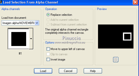 29. Selections>Load/Save Selection>Load Selection From Alpha Channel.