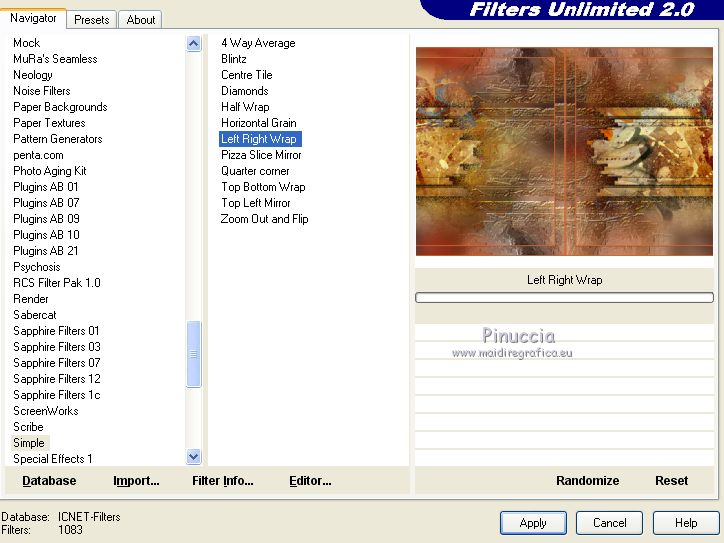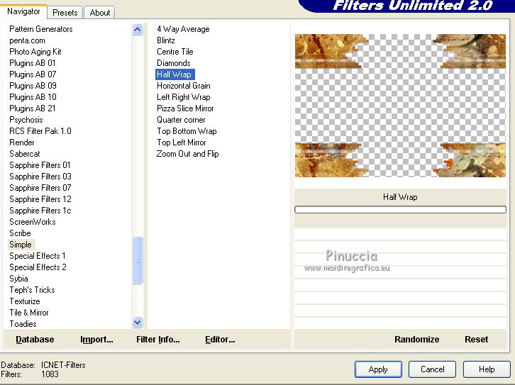 Effects>Plugins>Filters Unlimited 2.0 - Simple - Half Wrap.