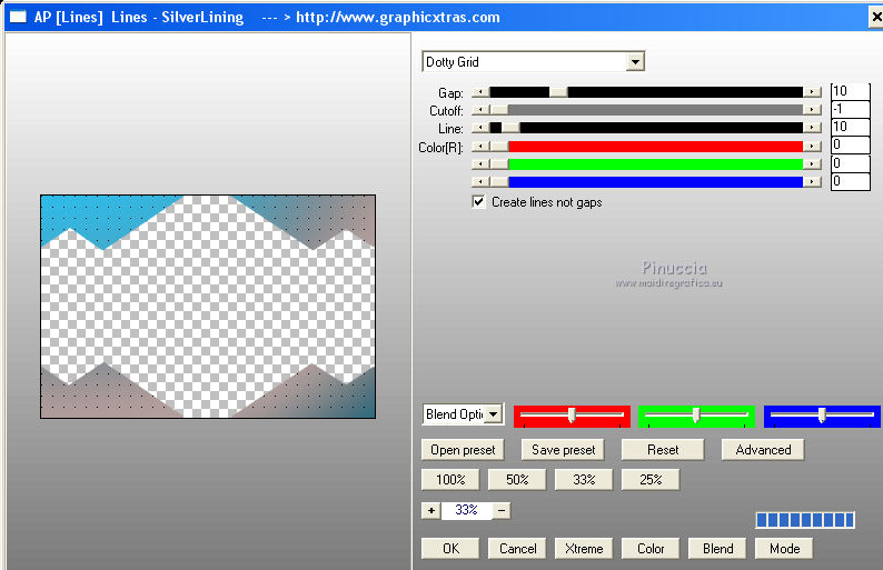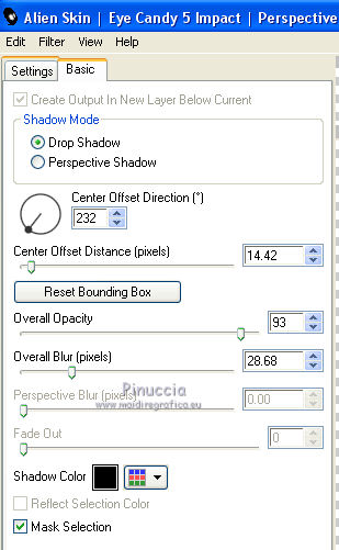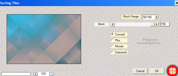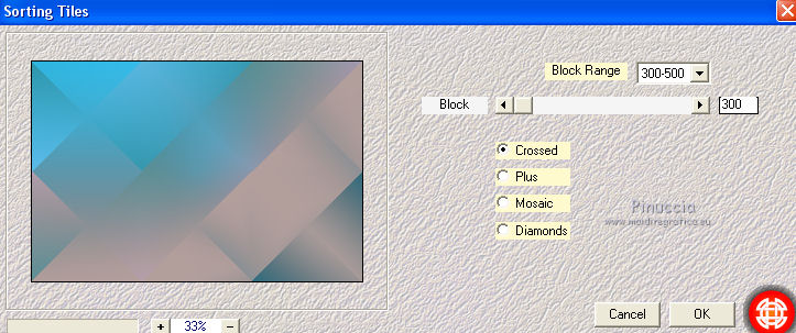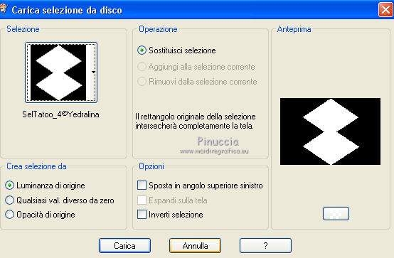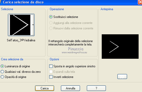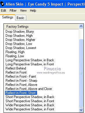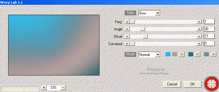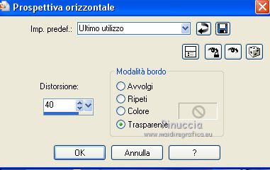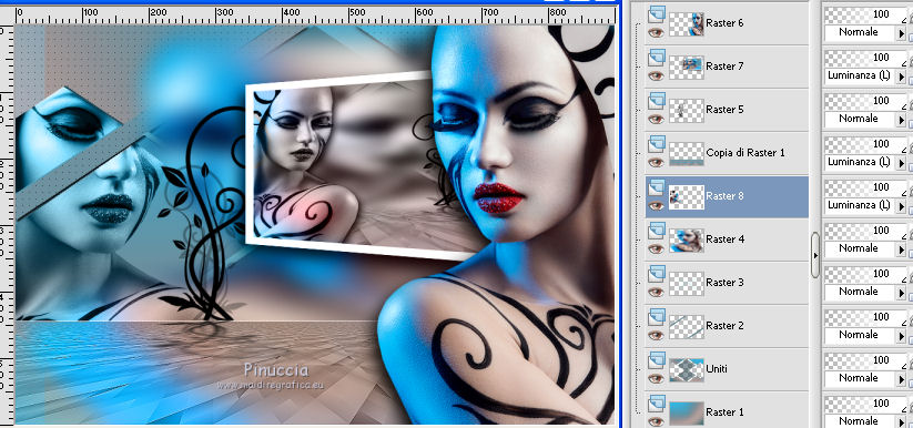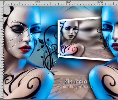 qui puoi trovare qualche risposta ai tuoi dubbi. Se l'argomento che ti interessa non è presente, ti prego di segnalarmelo. Questo tutorial è stato realizzato con Corel18 e tradotto con Corel X, ma può essere realizzato anche con le altre versioni di PSP. Dalla versione X4, il comando Immagine>Rifletti è stato sostituito con Immagine>Capovolgi in orizzontale, e il comando Immagine>Capovolgi con Immagine>Capovolgi in verticale. Nelle versioni X5 e X6, le funzioni sono state migliorate rendendo disponibile il menu Oggetti. Con la nuova versione X7, sono tornati Rifletti>Capovolgi, ma con nuove varianti. Vedi la scheda sull'argomento qui Le vostre versioni qui Occorrente: Un tube a scelta. Il resto del materiale qui Per il tube (non fornito) grazie Azalée. Il resto del materiale è di ©Yedralina. Filtri: se hai problemi con i filtri, consulta la mia sezione filtri qui Mura's Meister - Perspective Tiling qui Mehdi - Sorting Tiles qui Mehdi - Wavy Lab 1.1 qui AP Lines - Lines SilverLining qui Alien Skin Eye Candy 5 Impact - Perspective Shadow qui ![]() non esitare a cambiare modalità di miscelatura e opacità secondo i colori utilizzati. Metti le selezioni nella cartella Selezioni. 1. Apri una nuova immagine trasparente 900 x 600 pixels. Imposta il colore di primo piano con #ad9d9b e il colore di sfondo con #1ebcee. Effetti>Plugins>Mehdi - Wavy Lab 1.1 Questo filtro lavora con i colori della paletta: il primo è il colore di sfondo #1ebcee, il secondo quello di primo piano #ad9d9b: cambia il terzo colore con #246e85 e il quarto colore con #6e919f ![]() 2. Livelli>Duplica (copia di Raster 1). Selezione>Carica/Salva selezione>Carica selezione da disco. Cerca e carica la selezione SelTatoo_1©Yedralina. ![]() Selezione>Inverti. Premi sulla tastiera il tasto CANC .Selezione>Inverti. Effetti>Plugins>AP Lines - SilverLining - Dotty Grid. ![]() Selezione>Deseleziona. Cambia la modalità di miscelatura di questo livello in Luce netta. ![]() per il mio esempio, dopo questa aggiunta, ho apportato diverse varianti al testo originale, per adattare la traduzione al risultato finale Effetti>Plugins>Alien Skin Eye Candy 5 Impact - Perspective Shadow - preset Drop Shadow,Lowest ![]() 3. Livelli>Nuovo livello raster (Raster 2). Selezione>Carica/Salva selezione>Carica selezione da disco. Cerca e carica la selezione SelTatoo_5©Yedralina. ![]() Imposta il colore di primo piano con #6e919f e riempi la selezione con questo colore.Livelli>Duplica. Selezione>Deseleziona. Immagine>Rifletti. Livelli>Unisci>Unisci giù. Livelli>Disponi>Sposta giù. Selezione>Carica/Salva selezione>Carica selezione da disco. Cerca e carica nuovamente la selezione SelTatoo_1©Yedralina. ![]() Selezione>Inverti. Premi sulla tastiera il tasto CANC. Selezione>Deseleziona. 4. Attiva il livello superiore. Livelli>Nuovo livello raster - Raster 3. Selezione>Carica/Salva selezione>Carica selezione da disco. Cerca e carica la selezione SelTatoo_4©Yedralina . ![]() Imposta il colore di primo piano con #20404a, e riempi la selezione con questo colore.Selezione>Deseleziona. Abbassa l'opacità di questo livello al 52%. 5. Chiudi il livello inferiore - Raster 1. Livelli>Unisci>Unisci visibile. Immagine>Rifletti. Riapri il livello inferiore e rimani posizionato sul livello Uniti. 6. Livelli>Nuovo livello raster - Raster 2. Selezione>Carica/Salva selezione>Carica selezione da disco. Cerca e carica la selezione SelTatoo_2©Yedralina. ![]() Imposta il colore di primo piano con ##6e919f, e riempi la selezione con questo colore.Effetti>Plugins>AP Lines - Lines SilverLining, con i settaggi precedenti. Selezione>Deseleziona. Livelli>Duplica. Immagine>Rifletti. Immagine>Capovolgi. Livelli>Unisci>Unisci giù. Effetti>Plugins>Alien Skin Eye Candy 5 Impact - Perspective Shadow. Seleziona il preset Drop Shadow, Low e ok. ![]() 7. Livelli>Nuovo livello raster - Raster 3. Selezione>Carica/Salva selezione>Carica selezione da disco. Cerca e carica la selezione SelTatoo_3©Yedralina. ![]() Imposta il colore di primo piano con #8bccd0, e riempi la selezione con questo colore.Selezione>Deseleziona. Livelli>Duplica. Immagine>Rifletti. Livelli>Unisci>Unisci giù. 8. Livelli>Nuovo livello raster - Raster 4. Selezione>Seleziona tutto. Apri il tube Femme-1041-Azalee, elimina la firma, e vai a Modifica>copia. Minimizza il tube. Torna al tuo lavoro e vai a Modifica>Incolla nella selezione. Selezione>Deseleziona. Regola>Sfocatura>Sfocatura gaussiana - raggio 15. ![]() 9. Attiva il livello di sfondo - Raster 1. Livelli>Duplica. Livelli>Disponi>Porta in alto. Effetti>Plugins>Mehdi - Sorting Tiles. ![]() Di nuovo Effetti>Plugins>Mehdi - Sorting Tiles. ![]() Effetti>Plugins>Mura's Meister - Perspective Tiling. ![]() Effetti>Effetti di bordo>Aumenta. Cambia la modalità di miscelatura di questo livello in Luminanza (esistente). 10. Apri il tube tube 2i7xxjb.png, e vai a Modifica>Copia. Torna al tuo lavoro e vai a Modifica>Incolla come nuovo livello. Immagine>Ridimensiona, all'80%, tutti i livelli non selezionato. Effetti>Plugins>Alien Skin Eye Candy 5 Impact - Perspective Shadow. Preset Reflect in front, short e ok. ![]() Effetti>Effetti di immagine>Scostamento ![]() 11. Attiva nuovamente il tube Femme-1041-Azalee, e vai a Modifica>Copia. Minimizza ancora il tube. Torna al tuo lavoro e vai a Modifica>Incolla come nuovo livello. Immagine>Ridimensiona, al 70%, tutti i livelli non selezionato. Effetti>Effetti di immagine>Scostamento. ![]() Effetti>Plugins>Alien Skin Eye Candy 5 Impact - Perspective Shadow. Preset Drop shadow blurry. ![]() 12. Duplica il lavoro usando la combinazione di tasti maiuscola+D. Su questa copia. Attiva il livello con il filtro Perspective Tiling. Attiva lo strumento Bacchetta magica , sfumatura 30,e clicca nello spazio trasparente per selezionarlo. ![]() Premi alcune volte sulla tastiera il tasto CANC per sfumare il bordo.Immagine>Aggiungi bordatura, 30 pixels, simmetriche, colore bianco. Immagine>Ridimensiona, al 55%, tutti i livelli selezionato. Modif