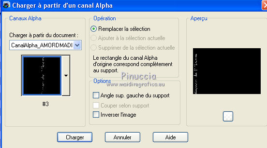 Sélections>Charger/Enregistrer une sélection>Charger à partir d'un canal alpha.