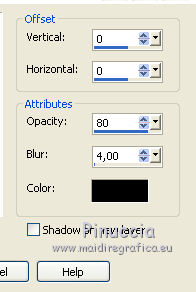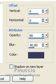 Effects>3D Effects>Drop Shadow, color 4 #383b5c (for my second version I used #3c2b27).