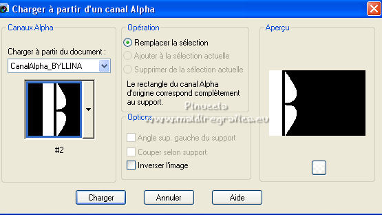 Sélections>Charger/Enregistrer une sélection>Charger à partir d'un canal alpha.