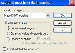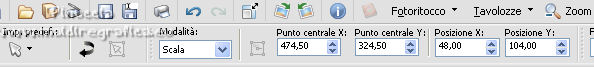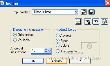 qui puoi trovare qualche risposta ai tuoi dubbi. Se l'argomento che ti interessa non è presente, ti prego di segnalarmelo. Questo tutorial è stato realizzato con Corel19 e tradotto con CorelX7, CorelX2 e CorelX3, ma può essere eseguito anche con le altre versioni di PSP. Dalla versione X4, il comando Immagine>Rifletti è stato sostituito con Immagine>Capovolgi in orizzontale, e il comando Immagine>Capovolgi con Immagine>Capovolgi in verticale. Nelle versioni X5 e X6, le funzioni sono state migliorate rendendo disponibile il menu Oggetti. Con la nuova versione X7, sono tornati Rifletti>Capovolgi, ma con nuove varianti. Vedi la scheda sull'argomento qui traduzione in francese/traduction en français qui/ici traduzione in inglese/english translation qui/here Versioni/Versions quiOccorrente: Un tube a scelta. Il resto del materiale qui Per il tube usato grazie Nikita L'immagine del frattale è stata trovata su Pinterest. La maschera è di Yedralina. (in questa pagina trovi i links ai siti dei creatori di tubes) Filtri: se hai problemi con i filtri, consulta la mia sezione filtri qui Filters Unlimited 2.0 - versione software qui Filters Unlimited 2.0 - versione in files 8bf qui Mura's Seamless - Emboss at Alpha qui Mehdi - Sorting Tiles qui Filter Factory Gallery J - Drink To Me qui Filter Factory Gallery D - Shoutin' qui AAA Frames - Foto Frame / AAA Filters - Custom (facoltativo) qui Facoltativo: Graphics Plus - Cross Shadow qui I filtri Mura's Seamless, Factory Gallery e Graphics Plus si possono usare da soli o importati in Filters Unlimited (come fare vedi qui) Se un filtro fornito appare con questa icona ![]() non esitare a cambiare modalità di miscelatura e opacità secondo i colori utilizzati. ![]() Metti il pennello nella cartella Pennelli. Attenzione, il pennello è composto da due files che non devono essere separati. Vedi gli appunti sui pennelli qui Metti il Preset_Pick_303-©Yedralina.PspScript nella cartella Impostazioni predefinite. Apri la maschera in PSP e minimizzala con il resto del materiale. 1. Apri una nuova immagine trasparente 950 x 650 pixels. Selezione>Seleziona tutto. Scegli un'immagine con i colori che preferisci, che saranno determinanti per il risultato del tuo lavoro. Nella materiale trovi una cartella nella quale puoi scegliere un frattale. Apri l'immagine in jpg e vai a Modifica>Copia. Torna al tuo lavoro e vai a Modifica>Incolla nella selezione. Selezione>Deseleziona. 2. Effetti>Effetti di immagine>Motivo unico. ![]() Regola>Sfocatura>Sfocatura gaussiana - raggio 15. ![]() 3. Effetti>Plugins>Mehdi - Sorting Tiles. ![]() Effetti>Effetti geometrici>Inclina. ![]() Effetti>Effetti di riflesso>Specchio rotante. ![]() Effetti>Effetti di riflesso>Specchio rotante, con i settaggi standard. ![]() 4. Ripeti Effetti>Effetti geometrici>Inclina, con i settaggi precedenti. ![]() Ripeti Effetti>Effetti di riflesso>Specchio rotante. ![]() Effetti>Effetti di bordo>Aumenta di più. Facoltativo: Effetti>Plugins>Filters Unlimited 2.0 - Filter Factory Gallery J - Drink to Me, con i settaggi standard. ![]() Nota: i filtri Factory Gallery possono dare un risultato differente a seconda della versione di Unlimited utilizzata. Per il mio esempio ho usato entrambe le versioni, ma le schermate e il risultato sono quelli ottenuti con la versione che non ha bisogno di installazione, perchè composta da files in formato 8bf. 5. Livelli>Duplica. Effetti>Plugins>Filters Unlimited 2.0 - Filter Factory Gallery D - Shoutin', Transparency 0. ![]() Tasto K sulla tastiera per attivare lo strumento Puntatore ![]() Apri il menu delle impostazioni e seleziona il preset Preset_Pick_303-©Yedralina.PspScript ![]() Questi i settaggi, in caso di problemi con il preset ![]() ![]() Tasto M per deselezionare lo strumento. 6. Effetti>Plugins>Filters Unlimited 2.0 - Filter Factory Gallery J - Drink to Me, con i settaggi standard. ![]() Ripeti l'Effetto ancora due volte (in totale 3). Effetti>Plugins>Mura's Seamless - Emboss at Alpha, con i settaggi standard. ![]() Effetti>Effetti di bordo>Aumenta. Effetti>Effetti 3D>Sfalsa ombra, colore nero. ![]() Cambia la modalità di miscelatura di questo livello in Luce netta. 7. Livelli>Nuovo livello raster. Imposta il colore di primo piano con il colore bianco. Riempi il livello con il colore bianco.Livelli>Nuovo livello maschera>Da immagine. Apri il menu sotto la finestra di origine e vedrai la lista dei files aperti. Seleziona la maschera Masc131©Yedralina. ![]() Livelli>Unisci>Unisci gruppo. Effetti>Plugins>Mura's Seamless - Emboss at Alpha, con i settaggi standard. Effetti>Effetti 3D>Sfalsa ombra, con i settaggi precedenti. ![]() Cambia la modalità di miscelatura di questo livello in Sovrapponi. 8. Livelli>Nuovo livello raster. Attiva lo strumento Pennello ![]() cerca e seleziona il pennello 5flowerwa. ![]() Applica il pennello con il colore bianco. Cambia la modalità di miscelatura di questo livello in Filtra, o a tuo piacimento. Sposta il pennello a destra, come nel mio esempio.Effetti>Effetti 3D>Sfalsa ombra, con i settaggi precedenti. 9. Per i bordi scegli dal tuo lavoro un colore scuro e un colore chiaro. Per il mio esempio: colore scuro: #7d3339; colore chiaro #a39e86 ![]() Immagine>Aggiungi bordatura, 1 pixel, simmetriche, colore scuro. Immagine>Aggiungi bordatura, 10 pixels, simmetriche, colore chiaro. Immagine>Aggiungi bordatura, 1 pixel, simmetriche, colore scuro. Immagine>Aggiungi bordatura, 1 pixel, simmetriche, colore chiaro. Immagine>Aggiungi bordatura, 1 pixel, simmetriche, colore scuro. Immagine>Aggiungi bordatura, 25 pixels, simmetriche, colore chiaro. Selezione>Seleziona tutto. Selezione>Modifica>Contrai - 6 pixels. Effetti>Plugins>AAA Frames - Foto Frame. ![]() Selezione>Seleziona tutto. Selezione>Modifica>Contrai - 38 pixels. Selezione>Inverti. Ripeti l'effetto Foto Frame con gli stessi settaggi. Selezione>Deseleziona. 10. Facoltativo: Effetti>Plugins>AAA Filters - Custom - clicca su Landscape, Brightness -5 e ok. ![]() Immagine>Ridimensi