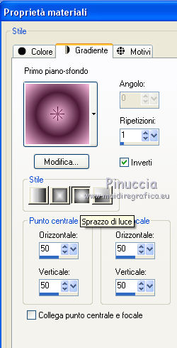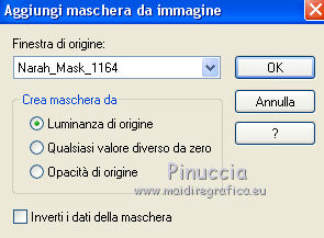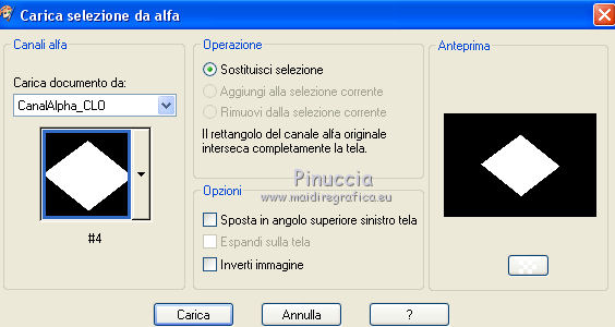 qui puoi trovare qualche risposta ai tuoi dubbi. Se l'argomento che ti interessa non è presente, ti prego di segnalarmelo. Questo tutorial è stato realizzato con Corel19 e tradotto con CorelX7, CorelX2 e CorelX3, ma può essere realizzato anche con le altre versioni di PSP. Dalla versione X4, il comando Immagine>Rifletti è stato sostituito con Immagine>Capovolgi in orizzontale, e il comando Immagine>Capovolgi con Immagine>Capovolgi in verticale. Nelle versioni X5 e X6, le funzioni sono state migliorate rendendo disponibile il menu Oggetti. Con la nuova versione X7, sono tornati Rifletti>Capovolgi, ma con nuove varianti. Vedi la scheda sull'argomento qui traduzione in francese/traduction en français qui/icitraduzione in inglese/english translation qui/here Versioni/Versions quiOccorrente: Materiale qui Per i tubes grazie Clo (woman_byClo716), Yedralina (1959©Yedralina). Per una maschera grazie Narah (Narah_Mask_1164). La seconda maschera non è firmata. Il resto del materiale è di Yedralina. (in questa pagina trovi i links ai siti dei creatori di tubes) Filtri: se hai problemi con i filtri, consulta la mia sezione filtri qui Filters Unlimited 2.0 qui VM Toolbox - Seamless Tile qui VanDerLee - Unplugged-X qui Facoltativo: AAA Filters - Custom qui I filtri VM Toolbox si possono usare da soli o importati in Filters Unlimited (come fare vedi qui) Se un filtro fornito appare con questa icona ![]() non esitare a cambiare modalità di miscelatura e opacità secondo i colori utilizzati. Nelle ultime versioni di PSP non c'è il gradiente di primo piano/sfondo (Corel_06_029) Puoi usare i gradienti delle versioni precedenti. Trovi qui i gradienti Corel X. Apri le maschere in PSP e minimizzale con il resto del materiale. ![]() Imposta il colore di primo piano con #4c1b38, e il colore di sfondo con #ffbfe3. ![]() 1. Apri CanalAlpha_Clo. Finestra>Duplica o sulla tastiera maiuscola+D per fare una copia. ![]() Chiudi l'originale. La copia, che sarà la base del tuo lavoro, non è vuota, ma contiene le selezioni salvate sul canale alfa. Riempi l'immagine trasparente con il colore scuro di primo piano #4c1b38.Selezione>Seleziona tutto. Apri il misted e vai a Modifica>Copia. Torna al tuo lavoro e vai a Modifica>Incolla nella selezione. Selezione>Deseleziona. Effetti>Effetti di immagine>Motivo unico. ![]() Regola>Sfocatura>Sfocatura gaussiana - raggio 10. ![]() 2. Passa il colore di primo piano a Gradiente di primo piano/sfondo, stile Sprazzo di luce. ![]() Livelli>Nuovo livello raster. Riempi il livello con il gradiente.Effetti>Plugins>VM Toolbox - Seamless Tile. ![]() Effetti>Plugins>VanDerLee - Unplugged-X. ![]() Effetti>Effetti di bordo>Aumenta. Effetti>Effetti 3D>Sfalsa ombra, colore nero. ![]() 3. Livelli>Nuovo livello raster. Riempi il livello con il colore chiaro di sfondo.Livelli>Nuovo livello maschera>Da immagine. Apri il menu sotto la finestra d'origine e vedrai la lista dei files aperti. Seleziona la maschera !rm_RetroZiti, Inverti selezionato. ![]() Livelli>Unisci>Unisci gruppo. Effetti>Effetti di immagine>Motivo unico. ![]() Effetti>Effetti di bordo>Aumenta. 4. Selezione>Carica/Salva selezione>Carica selezione da canale alfa. La selezione #1 è subito disponibile. Devi soltanto cliccare Carica. ![]() Livelli>Nuovo livello raster. Modifica>Incolla nella selezione (il misted è ancora in memoria). Selezione>Deseleziona. 5. Livelli>Nuovo livello raster. Riempi il livello con il colore chiaro di sfondo.Livelli>Nuovo livello maschera>Da immagine. Apri il menu sotto la finestra d'origine e seleziona la maschera Narah_Mask_1164. ![]() Livelli>Unisci>Unisci gruppo. Livelli>Duplica. Immagine>Capovolgi. Immagine>Rifletti. Livelli>Unisci>Unisci giù. Effetti>Effetti di bordo>Aumenta. 7. Livelli>Nuovo livello raster. Selezione>Carica/Salva selezione>Carica selezione da canale alfa. Apri il menu delle selezioni e carica la selezione #2. ![]() Modifica>Incolla nella selezione (il misted è sempre in memoria). Selezione>Inverti. Effetti>Effetti 3D>Sfalsa ombra, colore nero, ombra su nuovo livello selezionato. ![]() Selezione>Deseleziona. Cambia la modalità di miscelatura del livello dell'ombra in Sovrapponi. 7b. (Ripeti il passaggio precedente con la selezione #3). Livelli>Nuovo livello raster. Selezione>Carica/Salva selezione>Carica selezione da canale alfa. Apri il menu delle selezioni e carica la selezione #3. ![]() Modifica>Incolla nella selezione (il misted è sempre in memoria). Selezione>Inverti. Effetti>Effetti 3D>Sfalsa ombra, colore nero, ombra su nuovo livello selezionato. ![]() Selezione>Deseleziona. Cambia la modalità di miscelatura del livello ombra in Sovrapponi. 8. Attiva il livello Raster 2 (l'effetto Vanderlee). Selezione>Carica/Salva selezione>Carica selezione da canale alfa. Apri il menu delle selezioni e carica la selezione #4. ![]() Regola>Sfocatura>Sfocatura gaussiana, raggio 10. ![]() Selezione>Deseleziona. 9. Facoltativo: apri il testo "Clo" (Text_CLO©Yedralina) e vai a Modifica>Copia. Torna al tuo lavoro e vai a Modifica>Incolla come nuovo livello. Posiziona il testo a tuo piacimento.Effetti>Effetti 3D>Sfalsa ombra, a scelta. Cambia la modalità di miscelatura di questo livello in Sovrapponi. 10. Attiva il livello del misted. Livelli>Disponi>Porta in alto. 11. Immagine>Aggiungi bordatura, 1 pixel, simmetriche, colore scuro. Immagine>Aggiungi bordatura, 1 pixel, simmetriche, colore claro. Immagine>Aggiungi bordatura, 1 pixel, simmetriche, colore scuro. 12. Apri il tube principale e vai a Modifica>Copia. Torna al tuo lavoro e vai a Modifica>Incolla come nuovo livello. Immagine>Ridimensiona, 2 volte al 90%, tutti i livelli non selezionato. Sposta il tube a sinistra.Effetti>Effetti 3D>Sfalsa ombra, a scelta. 13. Firma il tuo lavoro su un nuovo livello. Immagine>Ridimensiona, 950 pixels di larghezza, tutti i livelli selezionato. Livelli>Unisci>Unisci tutto. Facoltativo: Effetti>Plugins>AAA Filters - Custom - clicca su Landscape e ok. ![]() Salva in formato jpg. Versione con tubes