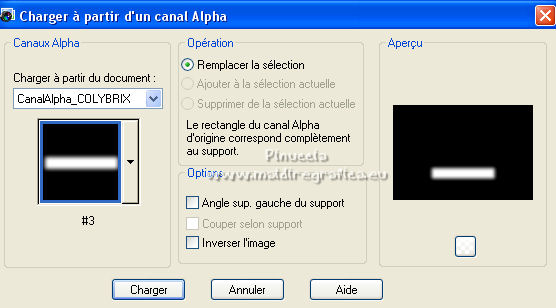 Sélections>Charger/Enregistrer une sélection>Charger à partir d'un canal alpha.