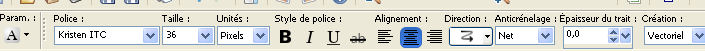 Font Kristen ITC, taille 36 pixels, couleur blanche d'arrière plan, couleur d'avant plan fermé.
