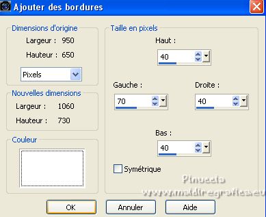 8. Image>Ajouter des bordures, symétrique décoché, couleur blanche.