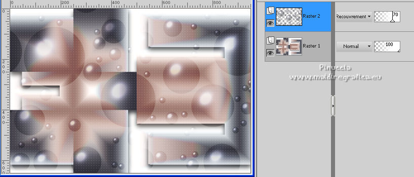 7. Placer le calque en mode Recouvrement et réduire l'opacité +/-70%.