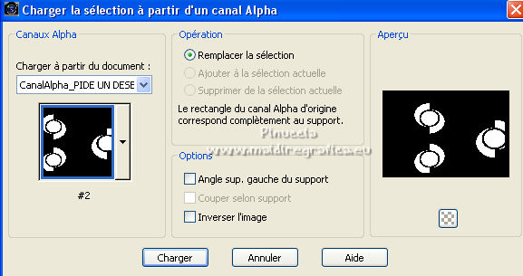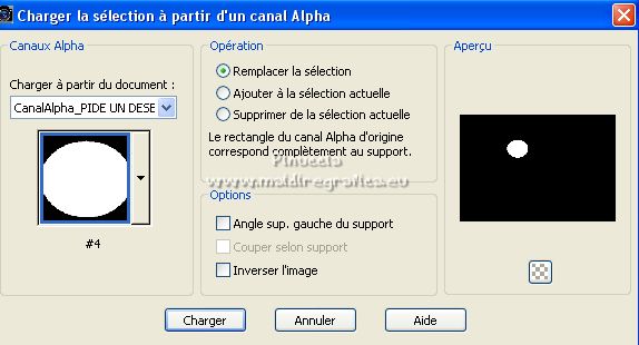 5. Sélections>Charger/Enregistrer une sélection>Charger à partir d'un canal alpha.