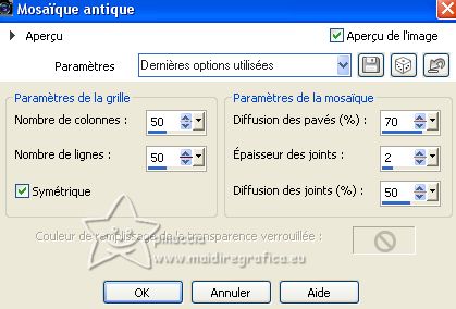 Effets>Effets d'image>Mosaïque sans jointures, par défaut.