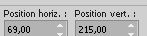 Placer Position horiz.: 69,00 et Position vert.: 215,00.