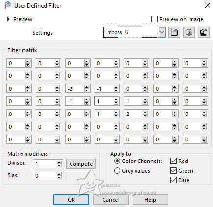 5. Effects>User Defined Filters - select the preset Emboss 6 and ok.