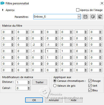 5. Effets>Filtre personnalisé - sélectionner le preset Emboss 6 et ok.