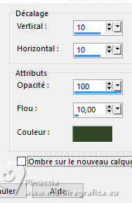 8. Effets>Effets 3D>Ombre portée, couleur 3 #334729