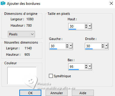 Image>Ajouter des bordures, 30 pixels, symétrique, couleur blanche.
