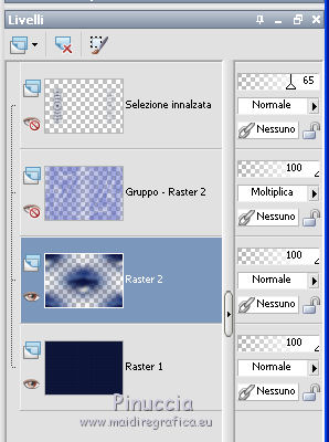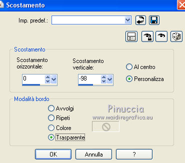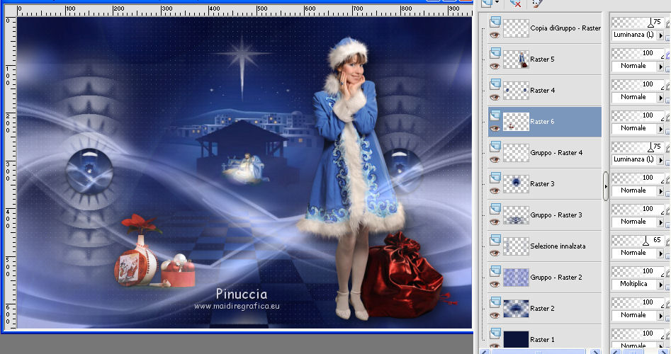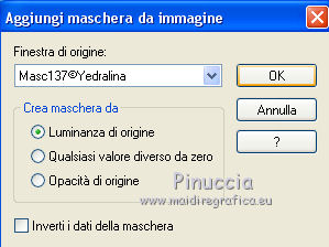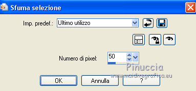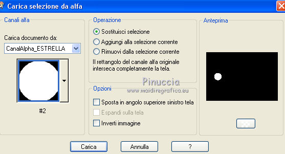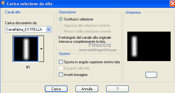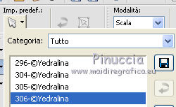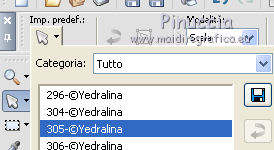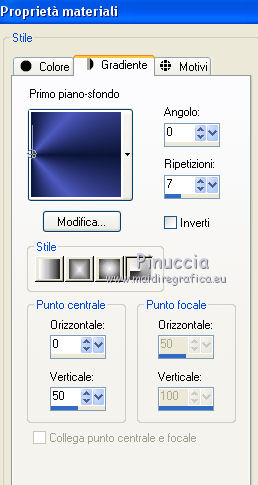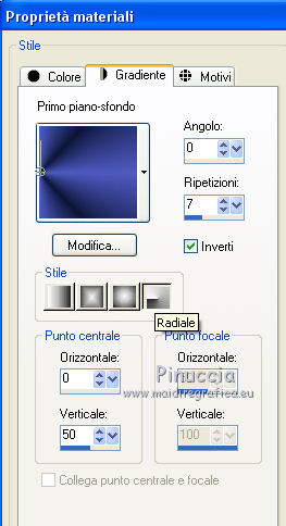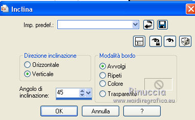 qui puoi trovare qualche risposta ai tuoi dubbi. Se l'argomento che ti interessa non è presente, ti prego di segnalarmelo. Questo tutorial è stato realizzato con Corel19 e tradotto con CorelX7, CorelX2 e CorelX3, ma può essere realizzato anche con le altre versioni di PSP. Dalla versione X4, il comando Immagine>Rifletti è stato sostituito con Immagine>Capovolgi in orizzontale, e il comando Immagine>Capovolgi con Immagine>Capovolgi in verticale. Nelle versioni X5 e X6, le funzioni sono state migliorate rendendo disponibile il menu Oggetti. Con la nuova versione X7, sono tornati Rifletti>Capovolgi, ma con nuove varianti. Vedi la scheda sull'argomento qui traduzione in francese/traduction en français qui/icitraduzione in inglese/english translation qui/here Versioni/Versions quiOccorrente: Tubes a scelta. Il resto del materiale qui Per i tubes utilizzati grazie Tocha (Tocha23680) e Maryse (MR_X-mas Deco). Per due maschere grazie Narah e Nikita. Il resto del materiale è di Yedralina. (in questa pagina trovi i links ai siti dei creatori di tubes) Filtri: se hai problemi con i filtri, consulta la mia sezione filtri qui Filters Unlimited 2.0 (versione software) qui Filters Unlimited 2.0 (versione che non si installa) qui AP 01 [Innovations] - Lines SilverLining qui Funhouse - Ring Tile qui Mura's Seamless - Emboss at Alpha qui Alien Skin Eye Candy 5 Impact - Glass qui Facoltativo: AAA Filters - Custom qui I filtri Funhouse e Mura's Seamless si possono usare da soli o importati in Filters Unlimited (come fare vedi qui) Se un filtro fornito appare con questa icona ![]() ![]() non esitare a cambiare modalità di miscelatura e opacità secondo i colori utilizzati. Nelle ultime versioni di PSP non c'è il gradiente di primo piano/sfondo (Corel_06_029) Puoi usare i gradienti delle versioni precedenti. Trovi qui i gradienti Corel X. Metti il preset Cliccando sul file una o due volte (a seconda delle tue impostazioni), automaticamente il preset si installerà nella cartella corretta. perchè uno o due clic vedi qui ![]() Metti i preset nella cartella Impostazioni predefinite. Apri le maschere in PSP e minimizzale con il resto del materiale. Imposta il colore di primo piano con #0d1537, e il colore di sfondo con #4d5ac0. ![]() 1. Apri Canal Alpha_Estrella. Finestra>Duplica o sulla tastiera maiuscola+D per fare una copia. ![]() Chiudi l'originale. La copia, che sarà la base del tuo lavoro, non è vuota, ma contiene le selezioni salvate sul canale alfa. Riempi l'immagine trasparente con il colore scuro di primo piano.Effetti>Plugins>AP 01 [Innovations] - Lines SilverLining. ![]() 2. Livelli>Nuovo livello raster. Selezione>Seleziona tutto. Apri il misted del paesaggio e vai a Modifica>Copia. Torna al tuo lavoro e vai a Modifica>Incolla nella selezione. Seleziona>Deseleziona. 3. Effetti>Effetti di immagine>Motivo unico. ![]() Regola>Sfocatura>Sfocatura gaussiana - raggio 15. ![]() 4. Livelli>Nuovo livello raster. Riempi il livello con il colore chiaro di sfondo.Livelli>Nuovo livello maschera>Da immagine. Apri il menu sotto la finestra di origine e vedrai la lista dei files aperti. Seleziona la maschera Masc137©Yedralina. ![]() Livelli>Unisci>Unisci gruppo. 5. Effetti>Effetti geometrici>Inclina. ![]() 6. Livelli>Duplica. Immagine>Rifletti. Immagine>Capovolgi. Livelli>Unisci>Unisci giù. Effetti>Effetti di bordo>Aumenta. Cambia la modalità di miscelatura di questo livello in Moltiplica, o a tuo piacimento. 7. Attiva il livello di sfondo, Raster 1. Selezione>Carica/Salva selezione>Carica selezione da canale alfa. La selezione #1 è subito disponibile. Devi soltanto cliccare Carica. ![]() Selezione>Modifica>Sfuma - 50 pixels. ![]() Selezione>Innalza selezione a livello. Livelli>Disponi>Porta in alto. 8. Effetti>Plugins>Filters Unlimited 2.0 - Funhouse - Ring Tile, con i settaggi standard. ![]() ***** Nota importante: la versione di Unlimited usata per questo tutorial è la versione che non si installa, perchè è composta da files in formato 8bf. (il link per scaricarla nella lista dei filtri) Se stai usando la versione Software che si installa, avrai un risultato differente. ![]() Purtroppo il problema non si risolve usando il filtro da solo. ![]() Per ottenere un buon risultato, è necessario sostituire nei Percorsi Files la versione software con la versione in file 8bf. Attenzione, non si tratta di una disinstallazione del filtro. In ogni momento potrai sostituire la versione in files con la versione software. ***** Selezione>Deseleziona. Abbassa l'opacità di questo livello +/-45%, secondo i tuoi colori. 9. Livelli>Duplica. Immagine>Rifletti. Livelli>Unisci>Unisci giù. Abbassa l'opacità di questo livello a +/-65%. 10. Chiudi questo livello (Selezione innalzata) e il livello sottostante (Gruppo-Raster 2) e attiva il livello Raster 2. ![]() 11. Modifica>Copia Speciale>Copia Unione. Modifica>Incolla come nuovo livello. Livelli>Disponi>Porta in alto. 12. Livelli>Nuovo livello maschera>Da immagine. Apri il menu sotto la finestra di origine e seleziona la maschera 1250181684_nikita_masques. ![]() Livelli>Unisci>Unisci gruppo. 13. Tasto K sulla tastiera per attivare lo strumento Puntatore ![]() apri il menu delle impostazioni e seleziona il preset 305-©Yedralina. ![]() Questi i settaggi, in caso di problemi con il preset. ![]() Effetti>Effetti 3D>Sfalsa ombra, colore nero. ![]() 14. Attiva nuovamente il misted del paesaggio e vai a Modifica>Copia. Torna al tuo lavoro e vai a Modifica>Incolla come nuovo livello. Tasto K per attivare lo strumento Puntatore ![]() apri il menu delle impostazioni e seleziona il preset 306-©Yedralina. ![]() Questi i settaggi ![]() Tasto M per deselezionare lo strumento. Regola>Messa a fuoco>Metti a fuoco. 15. Imposta il colore di primo piano con il colore bianco #ffffff. Livelli>Nuovo livello raster. Riempi il livello con il colore bianco.Livelli>Nuovo livello maschera>Da immagine. Apri il menu sotto la finestra di origine e seleziona la maschera Narah_Mask_0998. ![]() Live