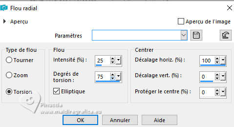 9. Réglage>Flou>Flou radial, comme précédemment.