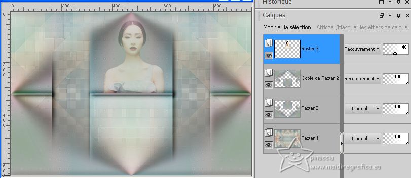 14. Placer le calque en mode Recouvrement et réduire l'opacité +/-48%.