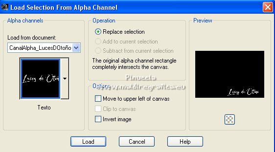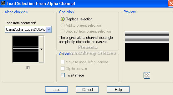 13. Selections>Load/Save Selection>Load Selection from Alpha Channel.