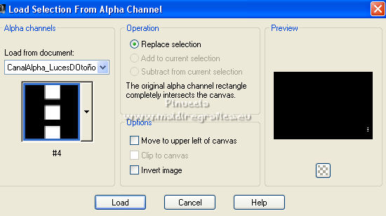 31. Selections>Load/Save Selection>Load Selection from Alpha Channel.