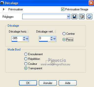 et placer Position horiz.: 43,00 et Position vert.: 198,00