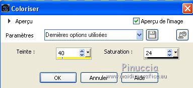 Pour mon exemple, j'ai appliqué au tube: Réglage>Teinte et Saturation>Coloriser