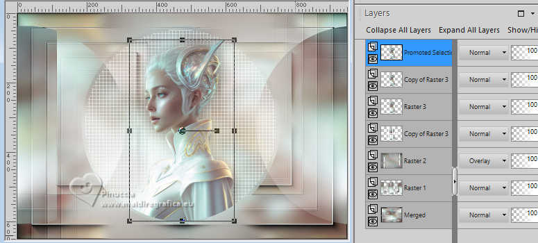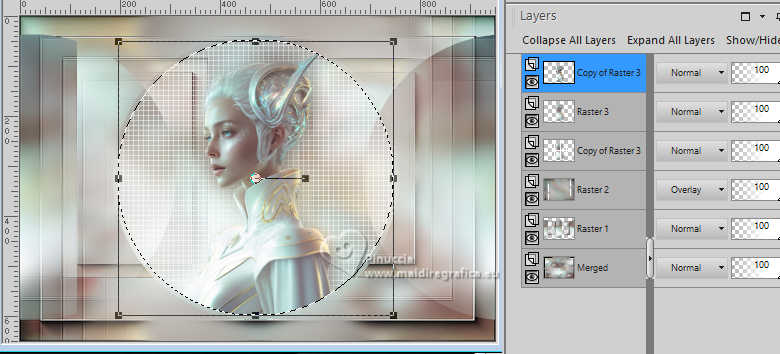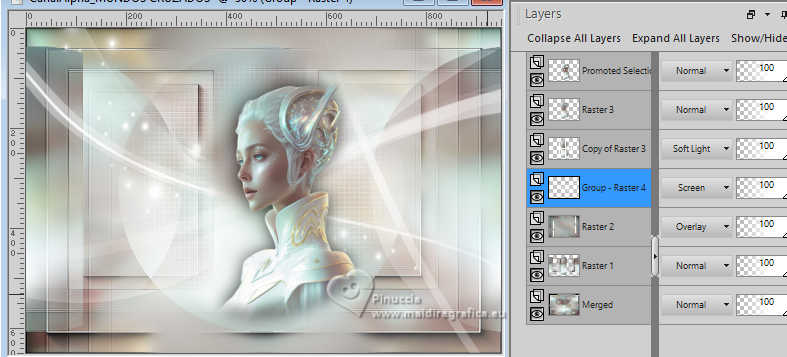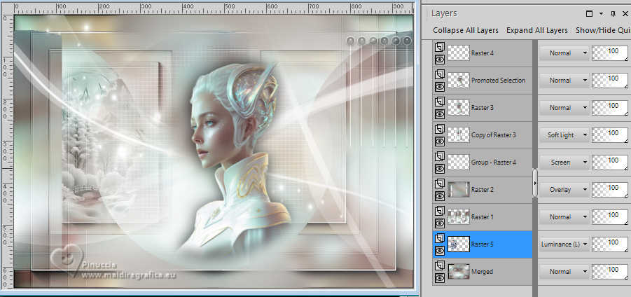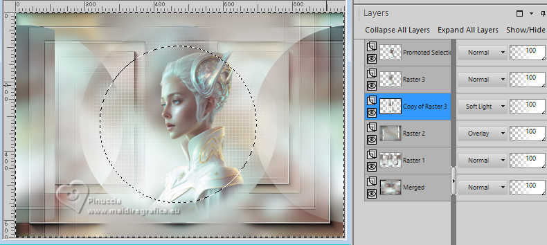 Change che Blend Mode of the lower level of the tubes, Copy of Raster 3, to Soft Light.