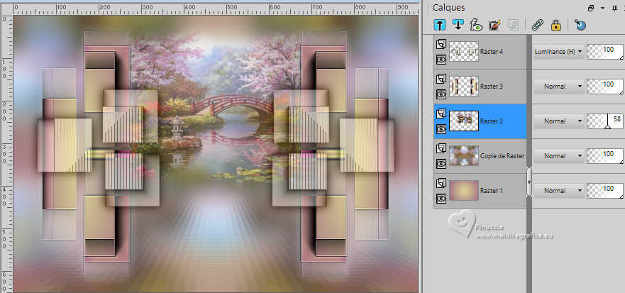 Réduire l'opacité de ce calque +/-58%, selon le tube