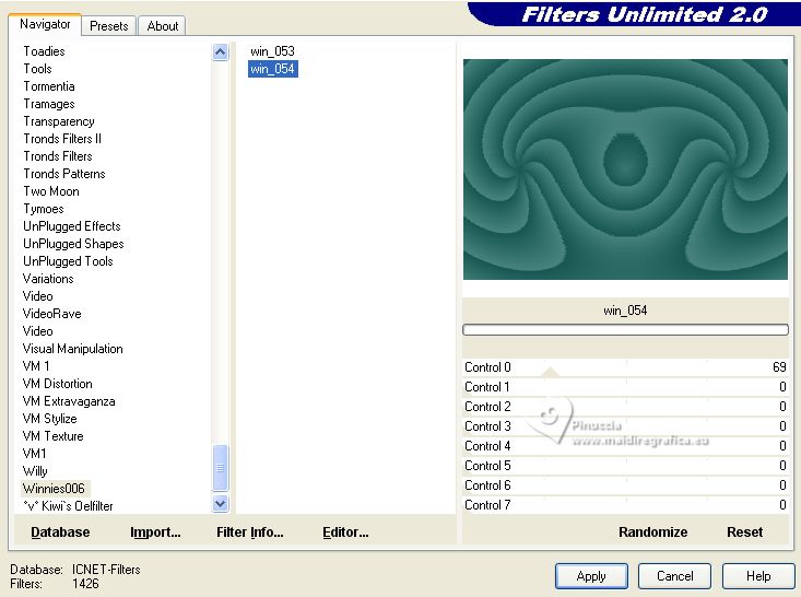 4. Effets>Modules Externes>Filters Unlimited 2.0 - Winnie006 - win_54, par défaut.