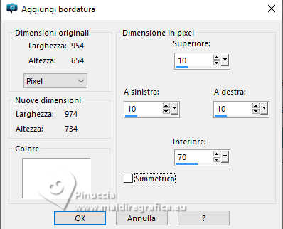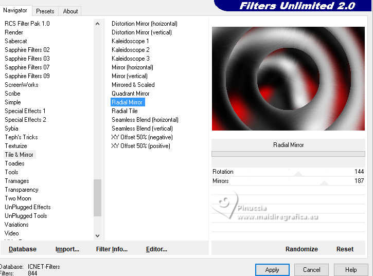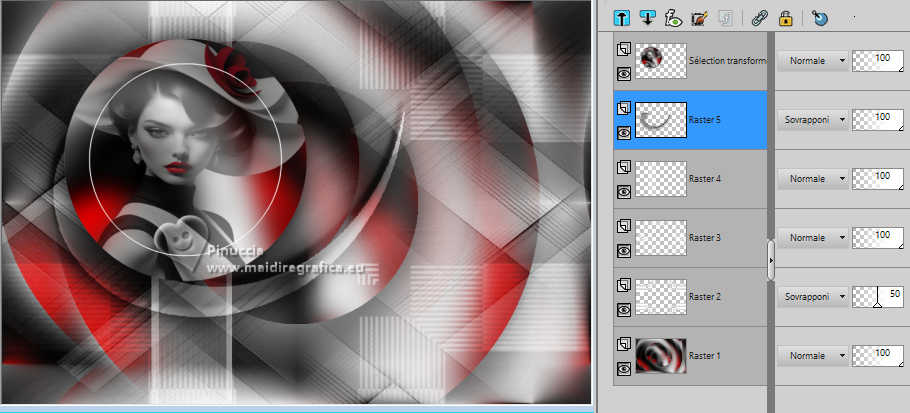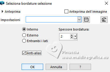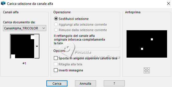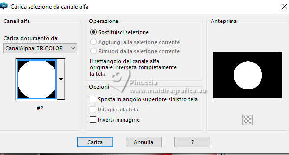 qui puoi trovare qualche risposta ai tuoi dubbi. Se l'argomento che ti interessa non è presente, ti prego di segnalarmelo. Questo tutorial è stato realizzato con PSP2020 e tradotto con PSPX9 e PSP2020, ma può essere eseguito anche con le altre versioni di PSP. Dalla versione X4, il comando Immagine>Rifletti è stato sostituito con Immagine>Capovolgi in orizzontale, e il comando Immagine>Capovolgi con Immagine>Capovolgi in verticale. Nelle versioni X5 e X6, le funzioni sono state migliorate rendendo disponibile il menu Oggetti. Con la nuova versione X7, sono tornati Rifletti>Capovolgi, ma con nuove varianti. Vedi la scheda sull'argomento qui traduzione in francese/traduction en français qui/ici traduzione in inglese/english translation qui/here Versioni/Versions qui![]() Occorrente: ![]() Grazie per i tubes Colybrix e Guismo. Immagine di Pinterest. Il resto del materiale è di Yedralina. (in questa pagina trovi i links ai siti dei creatori di tubes) Filtri: se hai problemi con i filtri, consulta la mia sezione filtri qui Filters Unlimited 2.0 qui ![]() non esitare a cambiare modalità di miscelatura e opacità secondo i colori utilizzati. ![]() 1. Apri CanalAlpha_TRICOLOR Finestra>Duplica o sulla tastiera maiuscola+D per fare una copia. ![]() Chiudi l'originale. La copia, che sarà la base del tuo lavoro, non é vuota, ma contiene le selezioni salvate sul canale alfa. Selezione>Seleziona tutto. Apri l'immagine in jpg ![]() Modifica>Copia. Torna al tuo lavoro e vai a Modifica>Incolla nella selezione. Selezione>Deseleziona. 2. Regola>Sfocatura>Sfocatura gaussiana - raggio 20. ![]() 3. Effetti>Plugins>Filters Unlimited 2.0 - Tile & Mirror - Radial Mirror, con i settaggi standard. ![]() 4. Effetti>Effetti di bordo>Aumenta di più. 5. Apri il tube Deco00190©Yedralina ![]() Modifica>Copia. Torna al tuo lavoro e vai a Modifica>Incolla come nuovo livello. Non occorre spostarlo. Abbassa l'opacità di questo livello al 50%. 6. Selezione>Carica/Salva selezione>Carica selezione da canale alfa. La selezione #1 é subito disponibile. Devi soltanto cliccare Carica. ![]() Premi sulla tastiera il tasto CANC ![]() Selezione>Deseleziona. 7. Cambia la modalità di miscelatura di questo livello in Sovrapponi. 8. Apri Deco00253©Yedralina ![]() Modifica>Copia. Torna al tuo lavoro e vai a Modifica>Incolla come nuovo livello. Non spostarlo. 9. Effetti>Effetti 3D>Sfalsa ombra, colore nero. ![]() 10. Apri Deco0123©Yedralina ![]() Modifica>Copia. Torna al tuo lavoro e vai a Modifica>Incolla come nuovo livello. 11. Tasto K per attivare lo strumento Puntatore ![]() Imposta Posizione X: 241,00 e mantieni Posizione Y: 0,00. ![]() Attiva il livello di sfondo, Raster 1. 12. Selezione>Carica/Salva selezione>Carica selezione da canale alfa. Apri il menu delle selezioni e carica la selezione #2 ![]() Selezione>Innalza selezione a livello. Livelli>Disponi>Porta in alto. 13. Livelli>Nuovo livello raster. Apri il tube principale femme933-coly ![]() Immagine>Rifletti. Modifica>Copia. Minimizza il tube. Torna al tuo lavoro e vai a Modifica>Incolla nella selezione. 14. Abbassa l'opacità di questo livello +/- 50%, secondo il tuo tube. oppure puoi cambiare la modalità di miscelatura del livello in Luce diffusa 15. Selezione>Modifica>Contrai - 40 pixels. 16. Selezione>Modifica>Seleziona bordature selezione. ![]() Imposta il colore di primo piano con il colore bianco #ffffff Livelli>Nuovo livello raster. Riempi la selezione con il colore bianco.Selezione>Deseleziona. 17. Livelli>Unisci>Unisci giù - 2 volte. 18. Effetti>Effetti 3D>Sfalsa ombra, colore nero. ![]() Attiva nuovamente il livello di sfondo, Raster 1. 19. Effetti>Effetti di immagine>Motivo unico, Intermittente diagonale. ![]() Attiva il livello superiore del cerchio, Selezione innalzata. 20. Tasto K per attivare lo strumento Puntatore ![]() Imposta Posizione X: 53,00 e Posizione Y: 13,00. ![]() ![]() Tasto M per deselezionare lo strumento. 21. Apri Deco0235©Yedralina ![]() Modifica>Copia. Torna al tuo lavoro e vai a Modifica>Incolla come nuovo livello. 22. Immagine>Capovolgi>Capovolgi in orizzontale. Immagine>Capovolgi>Capovolgi in verticale. 23. Tasto K per attivare lo strumento Puntatore ![]() Imposta Posizione X: 70,00 e Posizione Y: 156,00. ![]() Tasto M per deselezionare lo strumento. 24. Effetti>Effetti 3D>Sfalsa ombra, colore nero. ![]() 25. Cambia la modalità di miscelatura di questo livello in Sovrapponi. Livelli>Disponi>Sposta giù. ![]() 26. Immagine>Aggiungi bordatura, 2 pixels, simmetriche, colore nero #000000. Immagine>Aggiungi bordatura, simmetriche non selezionato, colore bianco. ![]() 28. Copia/Incolla come livello il testo TRICOLOR nel materiale trovi i font usati per il testo e i testi. Se preferisci, puoi usarli per scrivere il testo nella tua lingua ![]() ![]() ![]() ![]() Spostalo in basso a sinistra, sul bordo bianco.29. Attiva nuovamente il tube della donna femme933-coly. Modifica>Annulla Immagine>Rifletti. Modifica>Copia. Torna al tuo lavoro e vai a Modifica>Incolla come nuovo livello. Immagine>Ridimensiona, se necessario. Regola>Messa a fuoco>Metti a fuoco. Sposta il tube a destra.30. Livelli>Duplica. Attiva il livello sottostante dell'originale. 31. Regola>Sfocatura>Sfocatura gaussiana - raggio 20. ![]() 32. Cambia la modalità di miscelatura di questo livello in Moltiplica. 33. Apri il tube calguispierrepetale12022014 ![]() Modifica>Copia. Torna al tuo lavoro e vai a Modifica>Incolla come nuovo livello. Sposta il tube in basso a sinistra.Effetti>Effetti 3D>Sfalsa ombra, a scelta. 34. Immagine>Aggiungi bordatura, 1 pixel, simmetriche, colore nero #000000. 35. Immagine>Ridimensiona, 1000 pixels di larghezza, tutti i livelli selezionato. 36. Firma il tuo lavoro su un nuovo livello. Livelli>Unisci>Unisci tutto e salva in formato jpg. Per i tube di questo esempio grazie Virginia e Kamil - immagine di Pinterest. ![]() ![]() Puoi scrivermi se hai problemi o dubbi, o trovi un link che non funziona, o soltanto per un saluto. |
