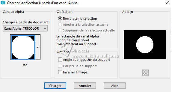 6. Sélections>Charger/Enregistrer une sélection>Charger à partir d'un canal alpha.