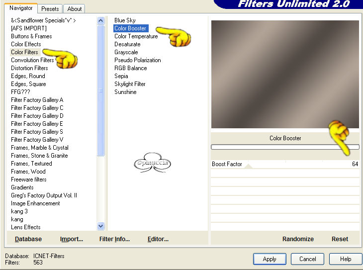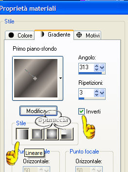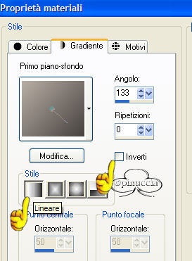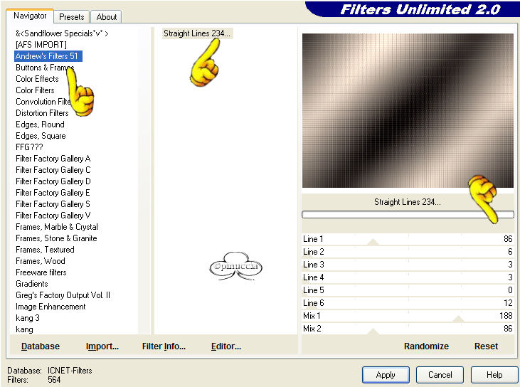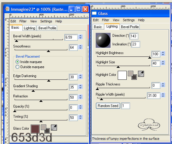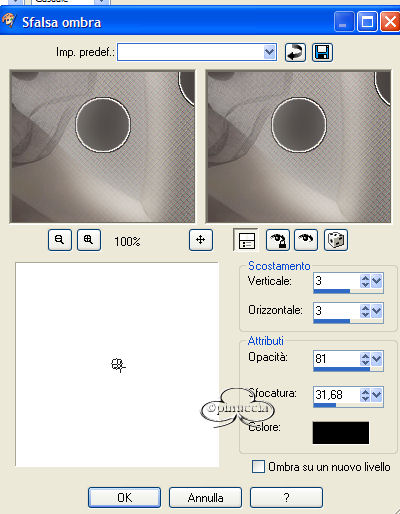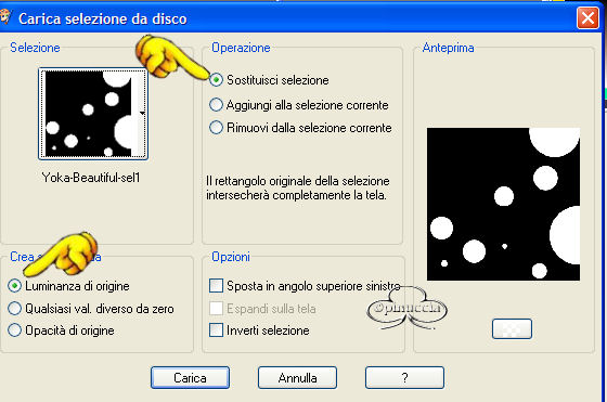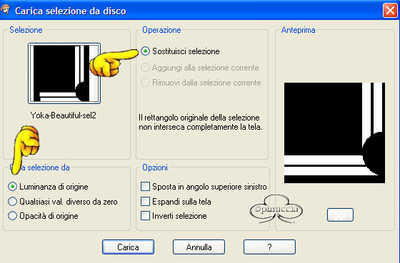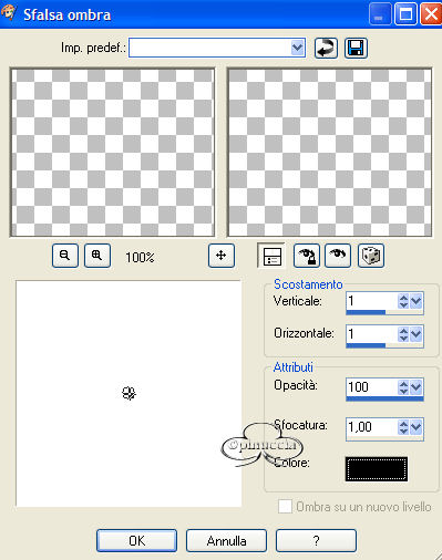 qui puoi trovare qualche risposta ai tuoi dubbi. Se l'argomento che ti interessa non è presente, ti prego di segnalarmelo. Questo tutorial è stato fatto con PSP 9. Occorrente: Materiale necessario qui Filtri (eccetto EC4 e F.Unlimited 1.0) sono qui Metti i pennelli nella cartella Pennelli di PSP. Metti i tubes in una cartella a scelta. Metti i fonts nella tua cartella Font. Metti le selezioni nella cartella Selezioni di PSP. Filtro Eye Candy 4000 qui Filtro Unlimited 2.0 qui Andrews Filter 51 - Straight Lines (nello zip, da importare nel Filtro Unlimited 1.0). Color Filter - Color Booster (nello zip, importare nel filtro Unlimited 1.0) Filtro L&K - Frederiek (nello zip, mettilo nella tua cartella filtri). Grazie molte per questo bellissimo filtro. Apri tutti i tubes. Modifica>Copia e poi Modifica>Incolla>Incolla come nuova immagine e chiudi gli originali. Preparazione: Scegli due colori dal tube, uno chiaro - io ho scelto #b8aea5(A) e uno scuro - io ho scelto #47423f (B). Io ho usato 4 colori in questo tutorial e ho fatto una tavola dei colori: Se stai usando altri tubes e altri colori puoi fare la tua tavola dei colori e usare i numeri come riferimento: 1. Apri una nuova immagine trasparente 750 x 550 pixels. 2. Crea un gradiente di primo piano/sfondo con i colori A e B. ![]() e riempi l'immagine con questo gradiente. 3. Regola>Sfocatura>Sfocatura gaussiana, raggio 30. 4. Effetti>Plugins>Unlimited 1.0 - color Filters - color Booster: ![]() 5. Effetti>Plugins>Unlimited 1.0 - Andrew Filters 51 - Straightlines 234, con i seguenti settaggi: ![]() 6. Livelli>Nuovo livello raster. 7. Imposta il colore di primo piano su: #47423f (B) 8. Attiva lo strumento Pennello e cerca il pennello Yoka -1Newspaper:![]() 9. Applica il pennello come si vede nella schermata sotto: ![]() 10. Abbassa l'opacità di questo livello al 38%. 11. Livelli>Nuovo livello raster 12. Imposta il colore di primo piano su: #dfdcd6 (C) 13. Attiva nuovamente lo strumento Pennello e cerca: Yoka-2Newspaper. ![]() 14. Applica il pennello come nell'esempio sotto: ![]() 15. Abbassa l'opacità di questo livello al 40%. 16. Livelli>Unisci>Unisci tutto e per il momento metti da parte questo file. 17. Apri una nuova immagine trasparente 400 x 400 pixels . 18. Imposta come colore di primo piano #b8aea5(A) e riempi l'immagine con questo colore. 19. Livelli>Nuovo livello raster. 20. Selezione>Carica/Salva selezione>Carica selezione da disco e carica la selezione Yoka-Beautiful-sel1, con i seguenti settaggi: ![]() 21. Selezione>Inverti. 22. Crea un gradiente di primo piano/sfondo usando i colori A + B. ![]() riempi la selezione, usando i seguenti settaggi: ![]() 23. Effetti>Effetti di bordo>Aumenta di più. Fai questo due volte. 24. Selezione>Inverti. 25. Riempi la selezione inversa con il colore scuro (B) #47423F. 26. Selezione>Inverti. 27. Effetti>Plugins>L&K - Frederiek, con i seguenti settaggi: ![]() 28. Selezione>Nessuna selezione. 29. Apri il tube Yoka-BlackEye-small. 30. Modifica>copia. 31. Torna al tuo lavoro e vai a Modifica>Incolla>Incolla come nuovo livello. Posiziona il tube nel semicerchio in alto a destra. ![]() 32. Apri il tube Yoka-BlackEyedLady-small. 33. Modifica>Copia. 34. Torna al tuo lavoro e vai a Modifica>Incolla>Incolla come nuovo livello. Metti il tube nel semicerchio a destra (vedi schermata). ![]() 35. Abbassa l'opacità di questo livello al 58%. 36. Apri il tube Yoka-MistedLady-10-11-05Pale. 37. Modifica>copia. 38. Torna al tuo lavoro e vai a Modifica>Incolla>Incolla come nuovo livello. Sposta il tube sull'angolo sinistro (vedi schermata sotto). ![]() 39. Livelli>Nuovo livello raster. 40. Selezione>Carica/Salva selezione>Carica selezione da disco e carica la selezione load Yoka-Beautiful-sel2, con i seguenti settaggi: ![]() 41. Riempi la selezione con il colore chiaro: #b8aea5(A) 42. Abbassa l'opacità di questo livello al 54% e cambia la modalità di miscelatura in Sovrapponi. Questo è quello che dovresti avere: ![]() 43. Effetti>Effetti 3D>Sfalsa ombra, con i seguenti settaggi: ![]() 44. Selezione>Nessuna selezione. 45. Immagine>Aggiugi bordatura, 2 pixels, simmetriche, colore: #47423f (B). 46. Immagine>Aggiungi bordatura, 30 pixels, simmetriche, colore, bianco. 47. Immagine>Aggiugi bordatura, 2 pixels, simmetriche, colore: #47423f (B). 48. Imposta un gradiente con gli stessi colori del passo 2. ![]() 49. Attiva la Bacchetta magica ![]() ![]() 50. Livelli>Nuovo livello raster. 51. Riempi la selezione con il gradiente. 52. Effetti>Plugins>EyeCandy 4000 - Glass, con i seguenti settaggi: ![]() ![]() 53. Selezione>Nessuna selezione. Questo è quello che dovresti avere: ![]() 54. Immagine>Aggiungi bordatura, 2 pixels, simmetriche, colore #dfdcd6( C) 55. Modifica>Copia. 56. Ritorna allo sfondo che hai messo da parte prima e vai a Modifica>Incolla>Incolla come nuovo livello. 57. Spostalo sulla sinistra: vedi schermata ![]() 58. Effetti>Effetti 3D>Sfalsa ombra, con i seguenti settaggi: ![]() 59. Livelli>Unisci>Unisci visibile. 60. Immagine>Ruota>90 gradi in senso antiorario. 61. Imposta come colore di primo piano #360404 (D) e come colore di sfondo #dfdcd6 (C). 62. Attiva lo strumento Testo e apri il font Sans Logique, con i seguenti settaggi:![]() 63. Scrivi Beautiful. 64. Selezione>Da oggetto vettoriale. 65. Nella paletta dei livelli Converti in livello raster. 66. Selezione>Modifica>Espandi di 4 pixels. 67. Effetti>Effetti 3D>Sfalsa ombra, con i seguenti settaggi: ![]() 68. Muovi questa parola un po' a sinistra (vedi schermata). ![]() 69. Immagine>Ruota>90 gradi in senso orario. 70. Inverti i colori nella paletta dei materiali e imposta il colore chiaro come colore di primo piano. 71. Apri il font ScrapCursive con gli stessi settaggi del passo 61. 72. Scrivi il tuo nome. 73. Selezione>Da oggetto vettoriale. Selections - From vectorobject 74. Nella paletta dei livelli Converti in livello raster. In your layerpallet; convert to rasterlayer 75. Selezione>Modifica>Espandi di 4 pixels. 76. Effetti>Effetti 3D>Sfalsa om